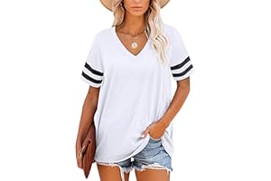 I top da donna indispensabili nel tuo guardaroba magliette estive donna disponibile colore manica corta Video del venditore Descrizione prodotto MOLERANI Summer V Neck tee MOLERANI T Shirts per le donne Manica Corta V Collo A Righe Crediamo che un buon abbigliamento abbia il potere di ispirare fiducia e bellezza. Occasione: Casual, tutti i giorni, corsa, all'aperto, viaggi, shopping, vacanze, feste, appuntamenti, lavoro oa casa. Caratterizzata da un colore alla moda! È perfetta con tutti i tipi di jeans, leggings o gonne, sembra elegante e bella. Materiale morbido: Queste graziose magliette sono realizzate in 60% poliestere di qualità e 5% elastan, è un tessuto leggero, sciolto, elastico, morbido e confortevole, si adatta al corpo della maggior parte delle forme femminili Maglietta Scollo Oversize MOLERANI Magliette Da Donna Magliette Estive A Righe Con Scollo A V Maglietta Donna Match: Questa maglietta a maniche corte morbida e confortevole è la scelta migliore per questa estate! Paese di origine : Cina