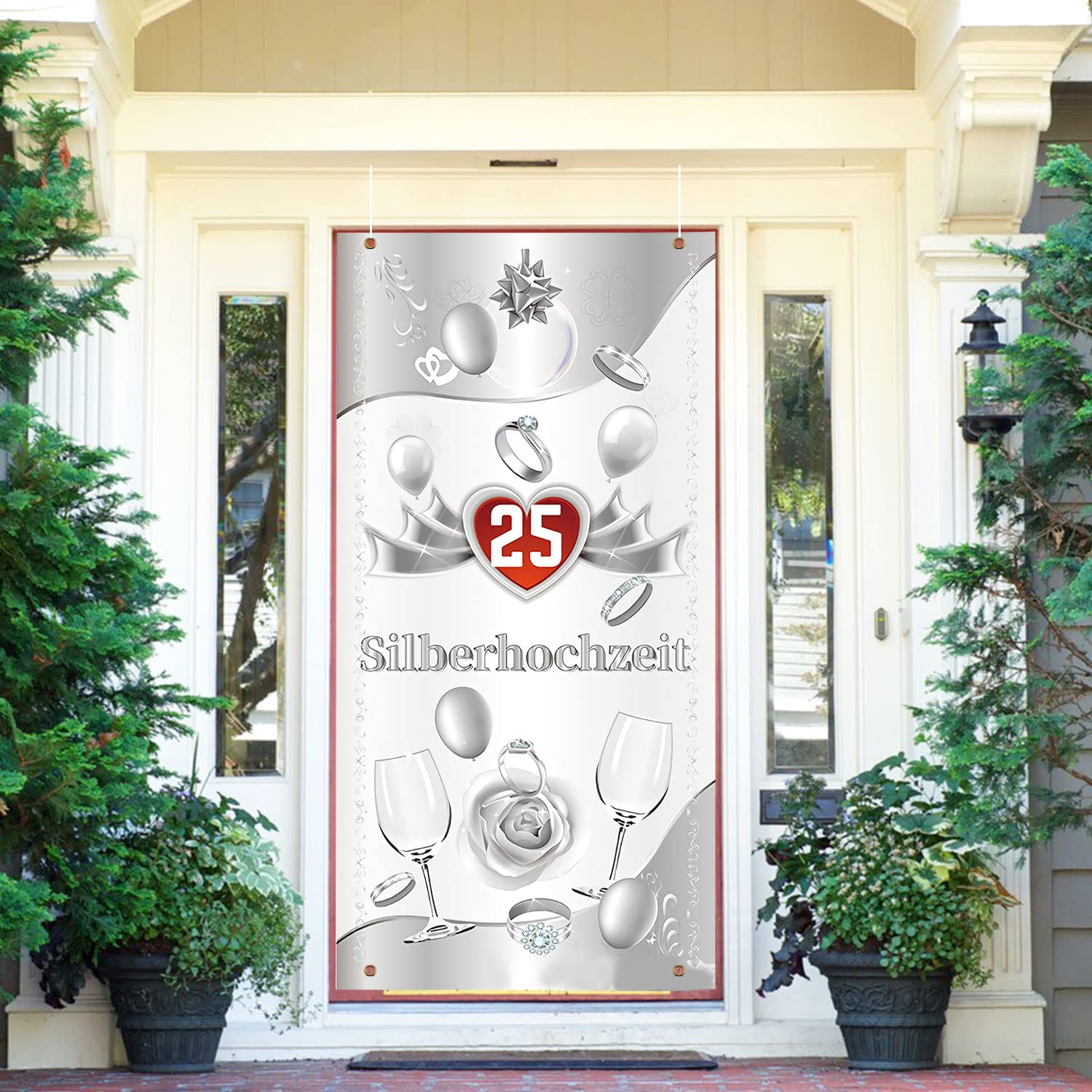 MONCAP Striscione Decorativa Per Matrimonio In Argento, 90 X 180 Cm, 25 Striscioni Argentate, 25° Anniversario Di Matrimonio, Decorazione Per Porta In