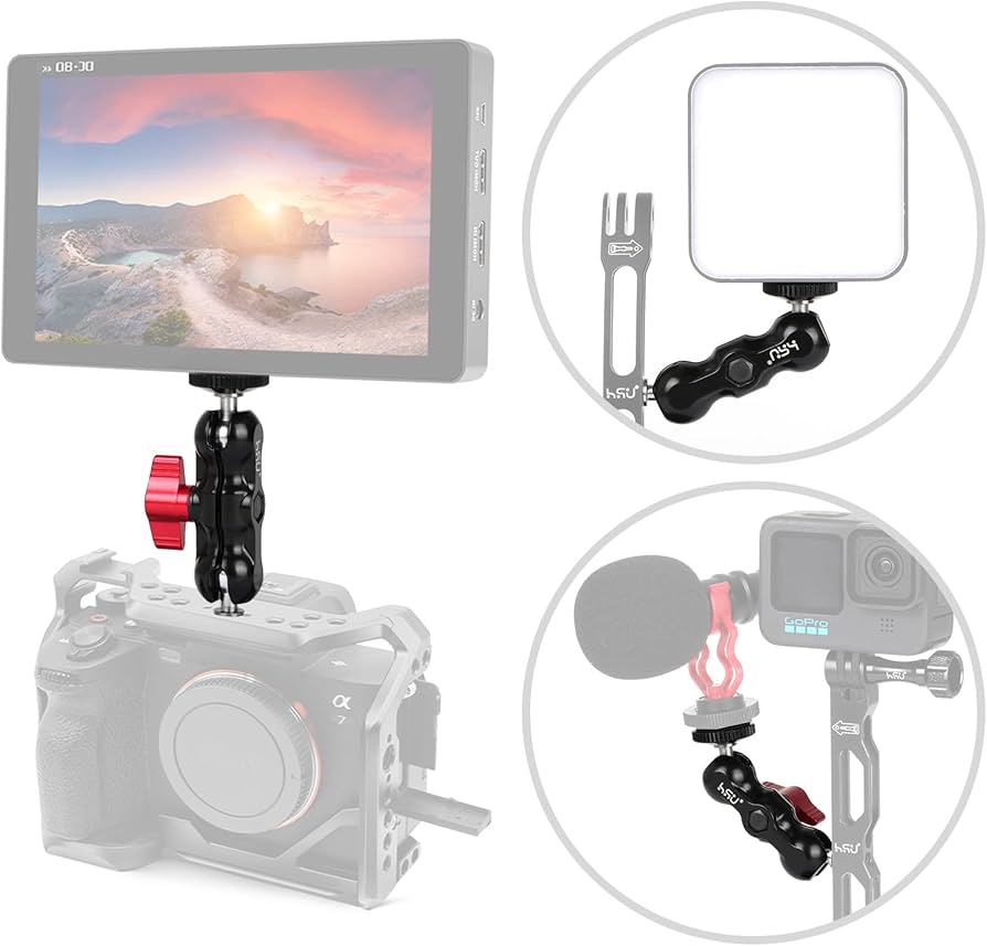 HSU Adattatore a doppia testa a sfera, braccio magico con vite da 1/4 per fotocamera DSLR, monitor LCD, luce video (confezione da 2 Vite Dslr MONTAGGIO SU BRACCIO Articolato Doppia Testa Un Sfera Vite Da 1/4 Di Pollic1979 EUR 20,29 Braccio Monitor Doppio 2 pacchi