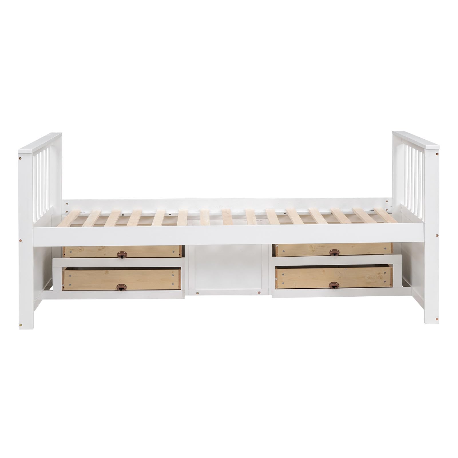 Le linee pulite e l'aspetto fresco si adattano facilmente a qualsiasi arredamento. Offre spazio sufficiente per dormire e risparmiare spazio, rendendolo la scelta perfetta per camere da letto più piccole, camere degli ospiti o piccoli appartamenti. Design multifunzionale: questa culla combina un letto, cassetti, ripiani e armadietti portaoggetti, che possono massimizzare l'uso dello spazio e creare un ambiente di vita e di apprendimento ordinato per il tuo bambino Aspetto bianco: con il suo design minimalista e la finitura bianca, questa struttura del letto si adatta perfettamente agli spazi moderni. Il telaio del letto è inoltre facile da pulire e mantiene il suo aspetto elegante per anni Tutte le parti sono chiaramente etichettate. Il materasso non è incluso. Inoltre, uno scaffale sulla testiera offre un facile accesso a libri o decorazioni, ideale per una camera da letto ordinata e funzionale Le doghe in legno massiccio offrono un eccellente supporto per il materasso e garantiscono una struttura forte e robusta. Stabile e sicuro: il telaio del letto realizzato in legno di pino di alta qualità offre stabilità e durata. Mobile Camera Da Letto MQGPM Lettino Imbottito Per Bambini, , 90 X 200 Cm, Con Rete A Doghe In Legno E Vano Portaoggetti, Letto Per Ragazzi Con Schienale E Supporto Per Doghe In Legno, Per Letto Singolo
