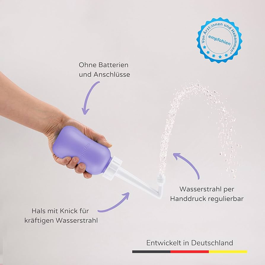 PO-DUSCCIA PER PULIRE IL PO: la doccia mobile garantisce una pulizia pulita con acqua. PICCOLA IMPRESA GRANDE MISSIONE: Esistono alti rischi di nascita in molti paesi. Particolarmente adatto in caso di disturbi sul sedere. Sostenibile, pratico e senza BPA. L'originale MYBIDET INTIM DOCCIA PER GRAVIDANZA E LETTO SETTIMANALE: nel puerperio e per lesioni alla nascita. Borsa Doccia MYBIDET 3.0 - Doccia Intima Per Doccia Disponibile Presso DM Drogeriemarkt E Rossmann Con Accessori, Borsa Da Viaggio E Coperchio, Più Facile Da Premere, In Letto Settimanale Bidet Da Viaggio Sia come bottiglia peri durante la gravidanza, per malattie ai glutei, durante il periodo, durante i viaggi, campeggio. Grazie alla testa retrattile, comodo per il trasporto. Adatto anche per bambini come doccia popo. RACCOMANDATO DA MEDICI E ADERENTI: la pulizia intima con acqua è raccomandata da ostetriche e medici. Come bidet portatile senza batterie e connettori.