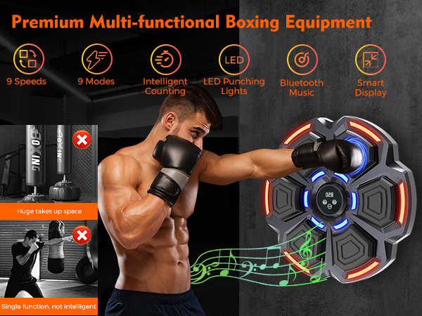 Macchina Da Boxe Musicale Per Adulti E Bambini, 9 Modalità Di Velocità, Musica Boxing Macchina Con Conteggio Automatico, Macchina Da Boxe Bluetooth Da