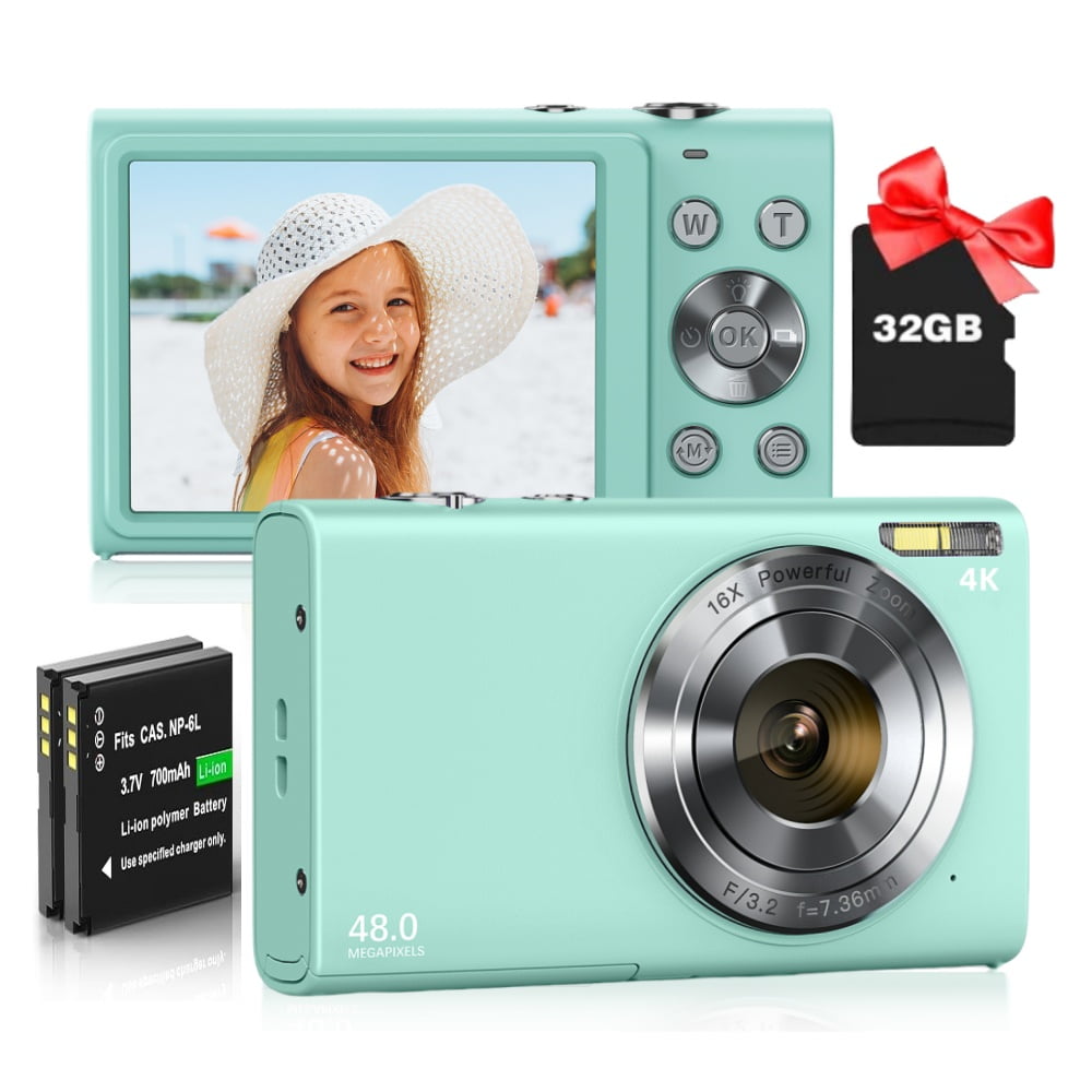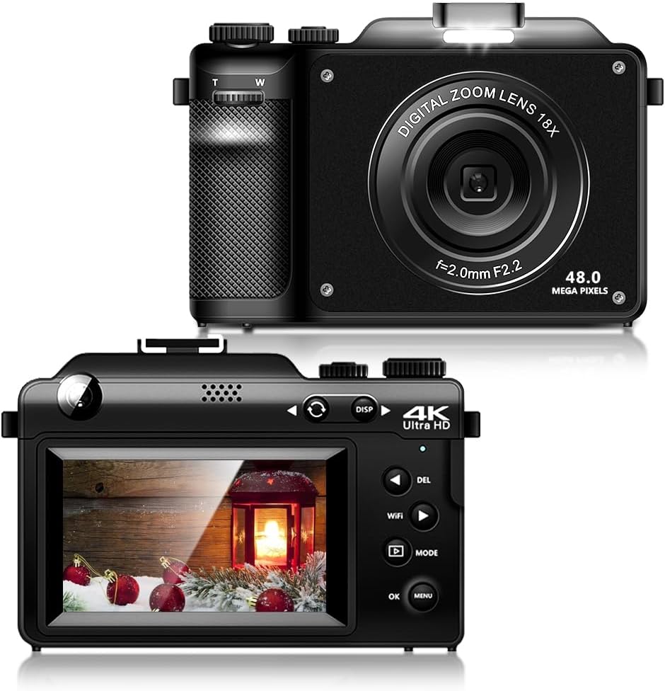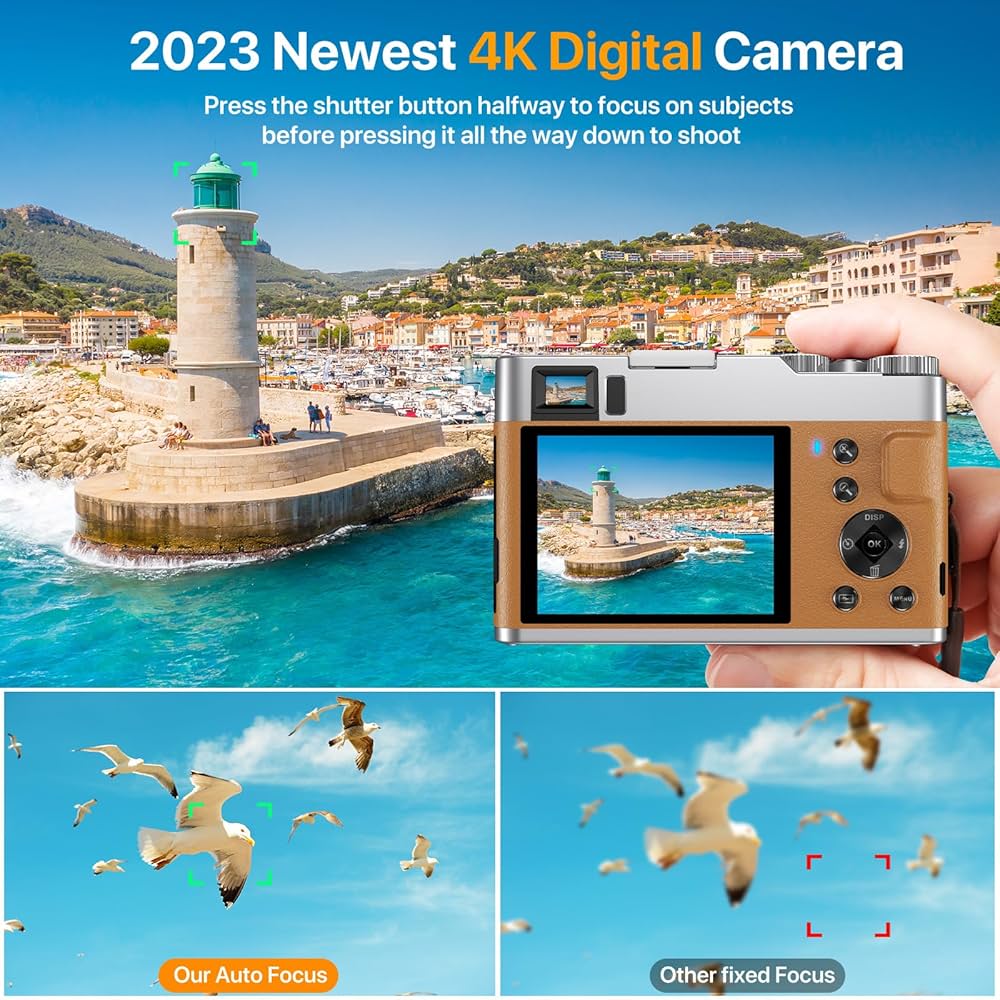 Go Pro 4K Macchina Fotografica Digitale 48MP Autofocus Scheda 32G Mirino Ottico Compatta Zoom 16x Flash Facile Da Usare Principiante 2 Batteria Ricaricabile (Nero Fotocamera Digitale