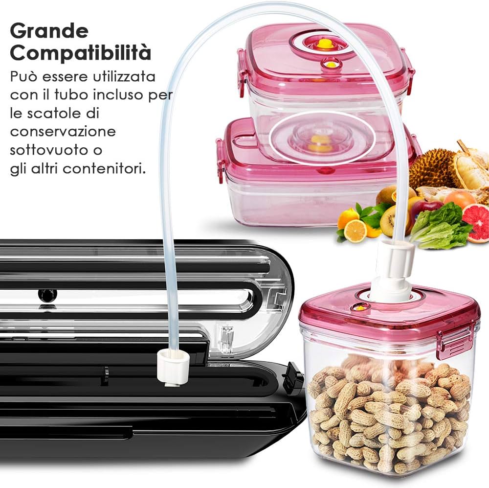 Sigillatore Sottovuoto Alimentare Sigillatore Sottovuoto Raycial Macchina Sottovuoto Alimenti 5 In 1 Sigillatrice Per Sottovuoto 【Modalità multifunzionale 5 in 1】 Il set include 1 aspirapolvere + 50 sacchetti per aspirapolvere + cavo di ricarica + manuale di istruzioni. Macchina Sottovuoto Alimenti,5 In 1 30 Cm Sigillatrice Automatica,Modalità Asciutta E Umida Sistema Aspirazione Da 65Kpa Con Sacchetti Sottovuoto Per Conservare Alimenti 24 € Fellow Contenitore Per Il Vuoto Per La Conservazione Di Caffè E Alimenti , Pompa Touchscreen impermeabile e sensibile, sigillatura sotto vuoto, facile da usare. 【Modalità doppia secca e umida】 L'unità sottovuoto è dotata di due modalità selezionabili, asciutta e bagnata, per fornire una conservazione ottimale del cibo a seconda del tipo di cibo, come carne, frutti di mare, frutta, verdura, noci, pane, patatine fritte e altro ancora! 【Freschezza durevole】 Con funzione di sterilizzazione viola, il cibo sigillato sotto vuoto mantiene il cibo fresco, impedisce la perdita di umidità, mantiene i nutrienti originali e consente alla tua famiglia di essere più sana. 【Design rimovibile unico e pulizia facile】 La piastra di base dell'unità sotto vuoto e gli slot trasparenti innovativi sono rimovibili e lavabili per una durata più lunga e una pulizia giornaliera più facile, che non solo semplifica la manutenzione, ma protegge anche la macchina da possibili danni idrici, rendendola perfetta per gli appassionati di cucina. Con una lunghezza massima di saldatura di 30 cm per la tenuta del vuoto, diversi piccoli sacchi possono essere saldati contemporaneamente.