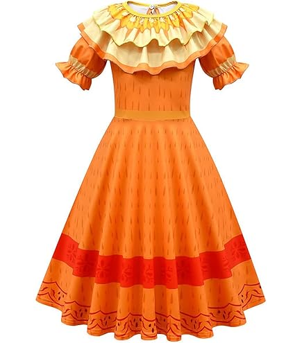 Vestito Ballerina Carnevale LCXYYY Dolores Costume Girl Cosplay Madrigal Dolores Ballerina Dress Up Dress Up Halloween Carnival Princess Birthday Party Clothes Size 100-160cm Vestito Isabella Encanto 💝 Contenuto della fornitura: Abito + parrucca + copricapo. 💝 Se volete preparare altre sorprese festive, abbiamo una gamma di abiti da principessa e costumi da cosplay tra cui scegliere. 💝 Per garantire la longevità dei vestiti, si prega di non usare candeggina o acqua calda perché potrebbero danneggiarli.