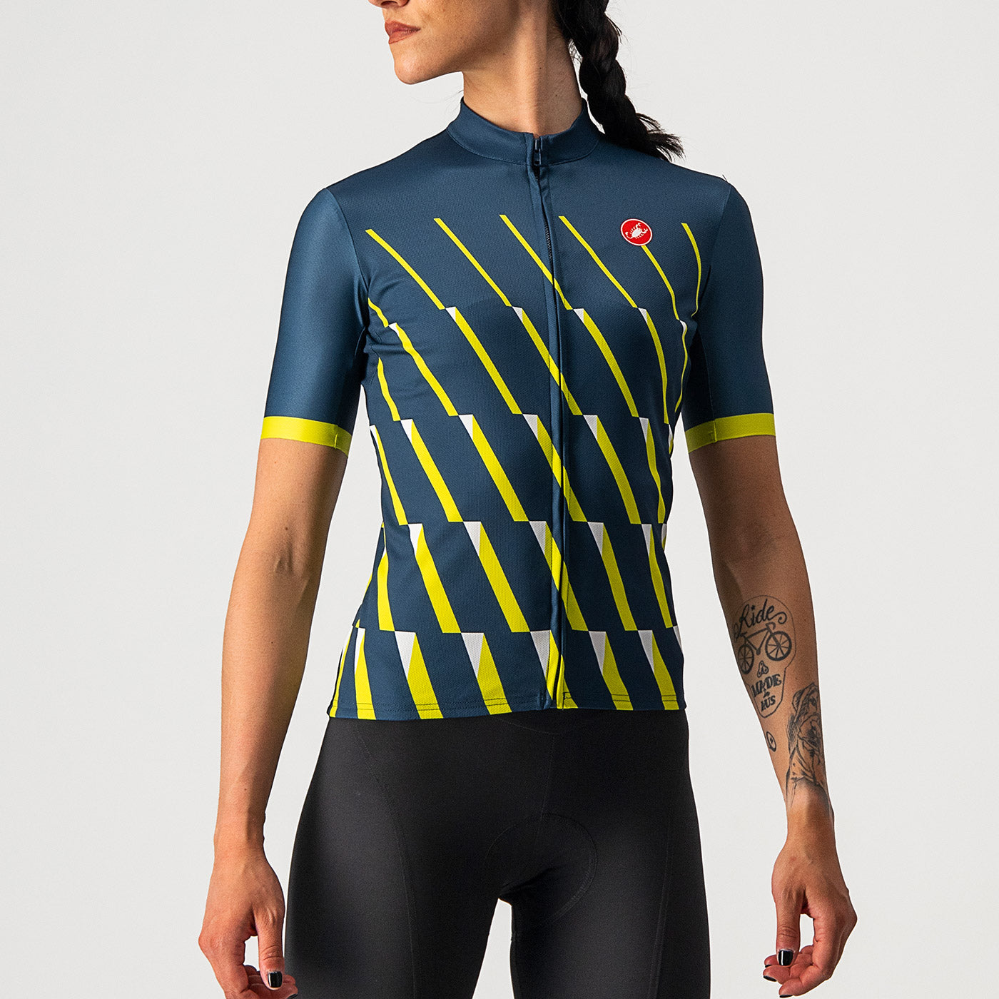 Pannelli laterali in rete per un’ottima traspirazione Poi sulle maniche utilizziamo il nostro tessuto Velocity Rev2 elasticizzato a quattro vie che offre una vestibilità e un confort senza pari e ci permette di lasciare il bordo a taglio vivo per un confort ancora maggiore. Questa maglia stampata a sublimazione offre prestazioni per ogni corsa, con un tessuto perfetto per il corpo principale, maniche elasticizzate a quattro vie con estremità a taglio vivo e una costruzione con parte posteriore allungata Maglia Castelli Ciclismo Uomo Maglia Castelli Phase Manica Lunga Donna Castelli Alpha Ros Tessuto Velocity Rev2 sulle maniche con vestibilità aderente ed estremità a taglio vivo Parte posteriore della maglia allungata con 3 tasche con inserto rifrangente Questa maglia è molto più della sua grafica. Cerniera YKK Vislon coperta Partiamo da grandi tessuti: il corpo principale in ProSecco Micromesh, combinato con pannelli laterali in rete per maggiore traspirabilità ed elasticità.