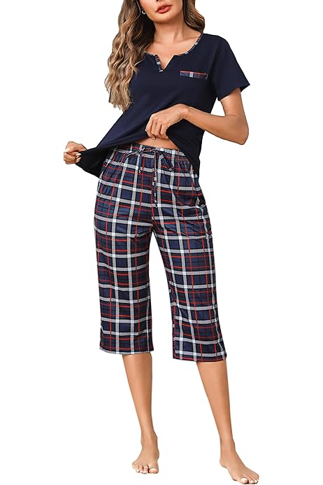 Paese di origine : Cina OCCASIONE: il set di PJ a due pezzi da donna è adatto per abbigliamento da notte, loungewear, abbigliamento per dormire, yoga, jogging, palestra, allenamento, casual o a casa, ecc. Completo Palestra Donna TRAMAS+ Pantaloncini In Viscosa Maglietta Corta E Pantaloncini, Pigiama Primaverile Ed Estivo - S, Adriane Turchese Pigiama Donna Pigiama da donna MoFiz AjezMax Donna Pigiama Due in 2 Pezzi Pigiami Estivi Collo a V Maniche Corte con Pantaloni Comodo e Traspirante per 29,99 E la coulisse elastica può regolare la dimensione della vita per un maggiore comfort. Questo pigiama morbido e leggero per le donne è il miglior pigiama, perfetto per dormire e oziare comodamente in casa. E due tasche laterali abbastanza profonde per trasportare telefono, chiavi e piccoli oggetti essenziali. Istruzioni di lavaggio: lavabile in lavatrice, lavaggio a mano Non candeggiare. TOP ELEGANTE CON SCOLLO A V: Scollo a V alla moda per aggiungere più fascino all'abbigliamento lounge. COMODI PANTALONI CROPPED: I pantaloni del pigiama da donna sono caratterizzati da una gamba dritta e rilassata e da un elastico in vita con coulisse regolabile, che rende il relax il più confortevole possibile. Design: pigiama da donna con pantaloni a 3/4, pantaloni pigiama in classici colori a quadretti con elastico e coulisse regolabile, e 2 tasche laterali. Istruzioni di lavaggio : Lavabile solo a mano Regalo perfetto: per la vostra fidanzata, moglie, madre, sorelle o amici per il compleanno, il giorno di Natale, San Valentino, o per altre feste o anniversari. Chiusura: coulisse Multifunzione: tuta casual e comoda per le donne per una giornata rilassata o una notte rilassata; come tuta per il tempo libero per un allenamento leggero, yoga, scelta ideale per le donne che apprezzano il comfort.