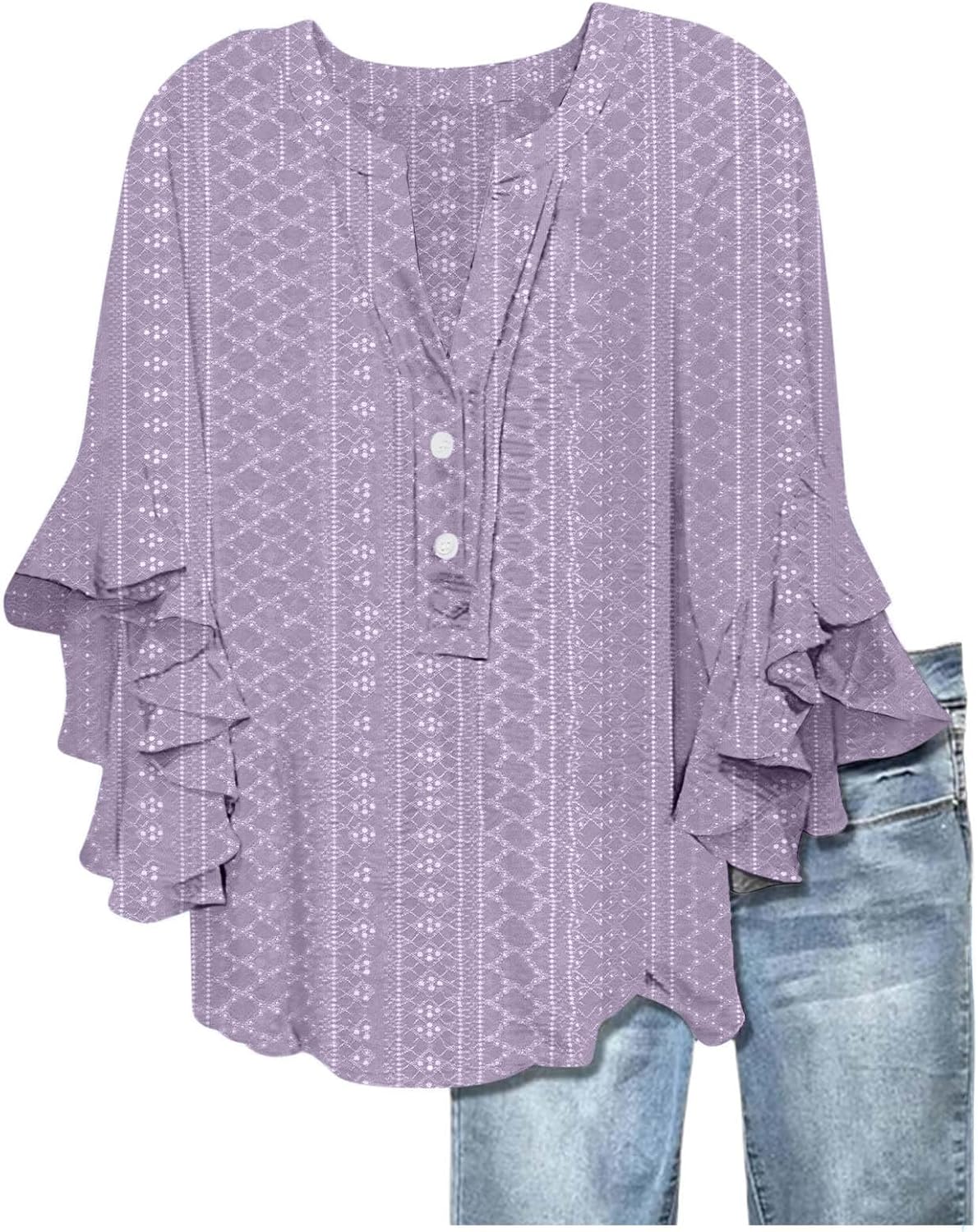 Maglietta Da Donna Plissettata Con Bottoni E Maniche A 3/4, Camicetta Da Donna Con Stampa Floreale Con Scollo A V, Camicie Estive Da Donna UK Con Maniche Svasate, Camicetta Casual, Bianco, S