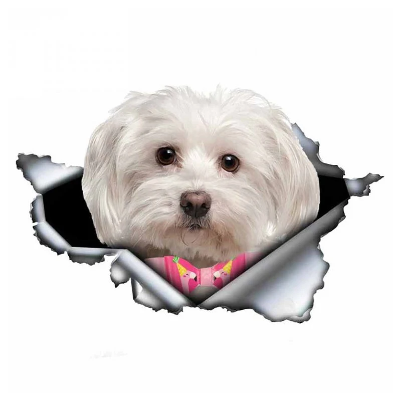 Adesivo Per Auto Maltese, 18 Cm, Bianco Maltese, 3D, Strappato, Per Auto, Divertente, Maltese, Riflettente, Per Paraurti