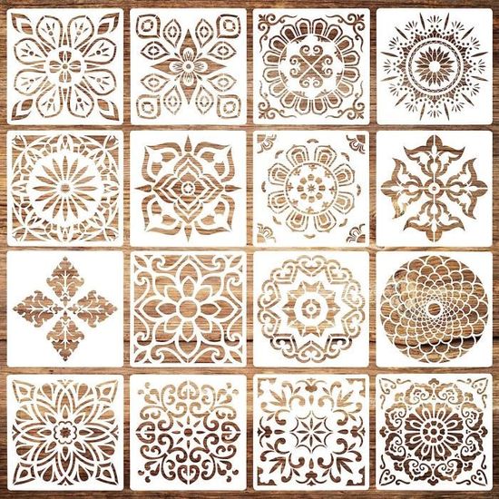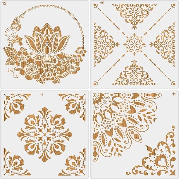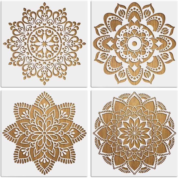 MWOOT 4 Pièces Grand Mandala Pochoirs Pour Peinture, Réutilisables Stencils For Painting, Pochoir Dessin Mural A Peindre, Bricolage Toile Fenêtres
