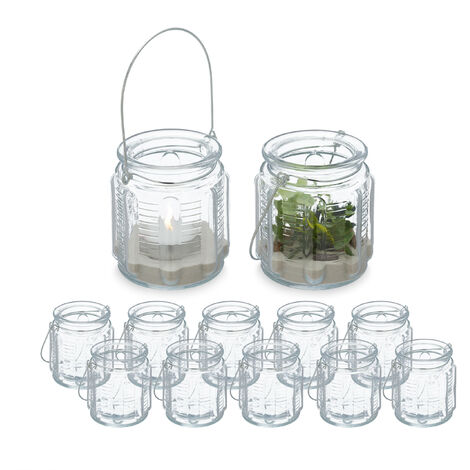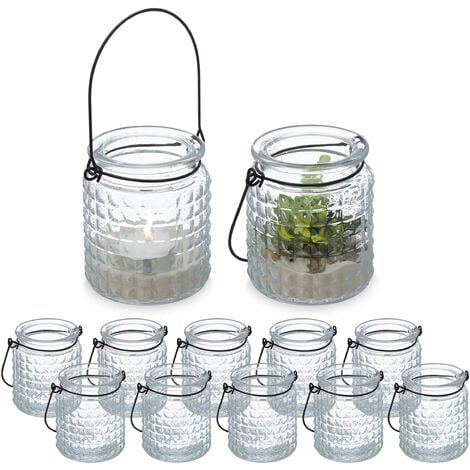 Relaxdays Vasetti Portacandele, Set 12, Vasi In Vetro, Ampolle Con Manico Indoor Outdoor HxD 10x8,5 Cm, Trasparente Nero : Amazon.it: Casa E Cucina