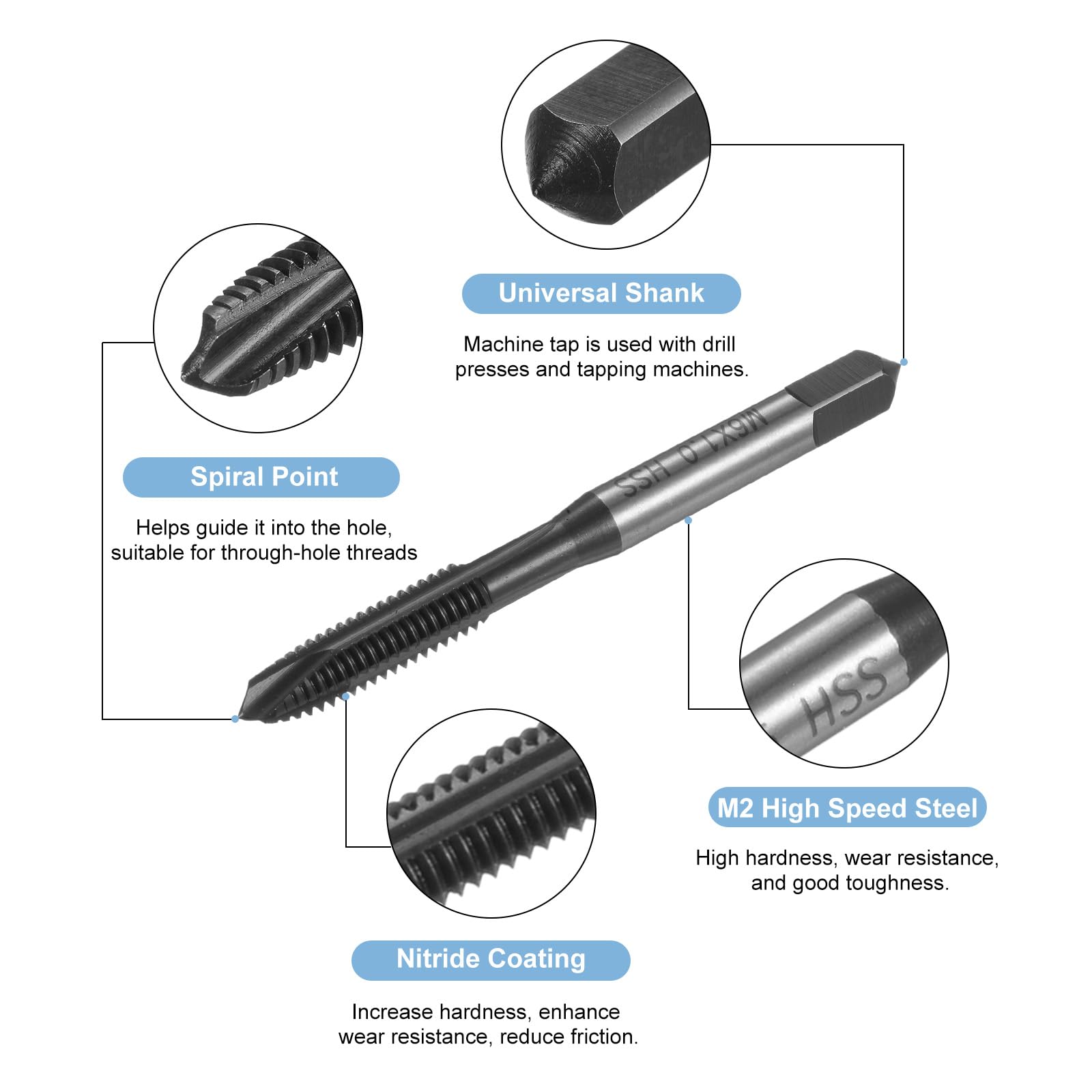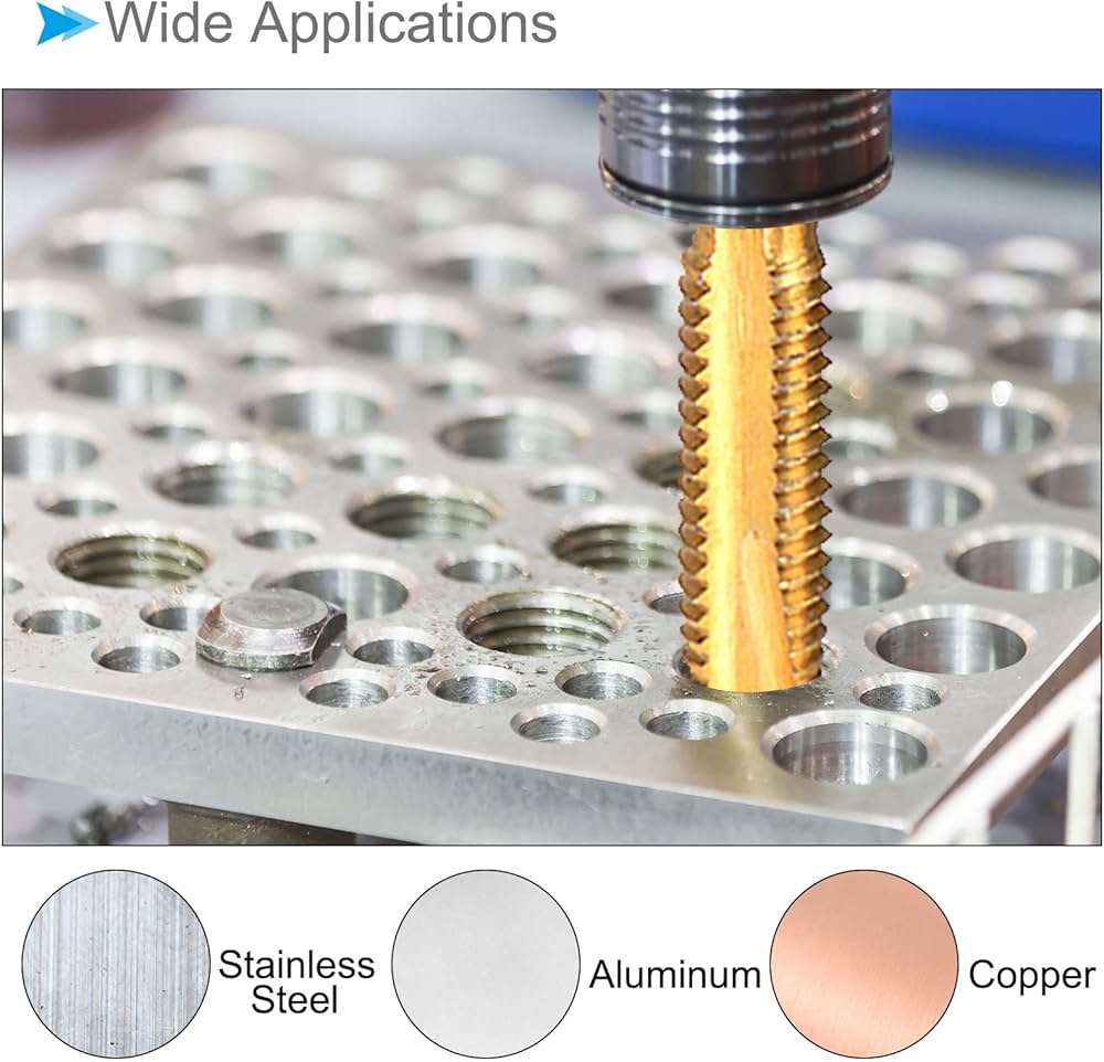 Le scanalature presenti sulla filettatura aiutano a rimuovere i trucioli e i detriti dal foro. Attacco automatico: Ideale per trapani, maschiatrici, macchine CNC e fresatrici. Le migliori offerte per 4Pz Metrico Spirale Punta Filettatura Maschi M6 X 1 H2 Rivestito Nitruro Vite Ma sono su Confronta prezzi e caratteristiche di prodotti nuovi e usati Molti articoli con consegna gratis Applicazione: Le maschiatrici per filettature consentono di eseguire filettature con fori passanti. Il rivestimento al nitruro incrementa il grado di durezza, la resistenza all'usura e attenua l'attrito per una durata maggiore, ottenendo prestazioni di maschiatura più fluide e veloci. L'angolo di maschiatura deve essere verticale e stabile a 90 gradi. La punta del maschiatore aiuta a guidarlo nel foro e riduce la coppia necessaria per girarlo. Maschi punta elicoidale metrica: Filettatura dimensione: M6 x 1 (mano destra); Tolleranza: H2; filettatura lunghezza: 20mm / 0.79; totale lunghezza: 67mm / 2.64; quadrato gambo Larghezza: 4.3mm / 0.17. 6542 (M2) Acciaio ad alta velocità: La maschiatura a vite lavora ad alta velocità e produce filetti in modo rapido ed efficiente, assicurando elevata durezza, resistenza all'usura e tenacità. Dritto scanalature sono perfettamente smerigliati per garantire la rimozione dei trucioli verso il basso, con filettatura chiara e taglienti affilati. Filiera Per Filettatura 4Pz Metrico Spirale Punta Filettatura Maschi M6 X 1 H2 Rivestito Filettatrice Manuale