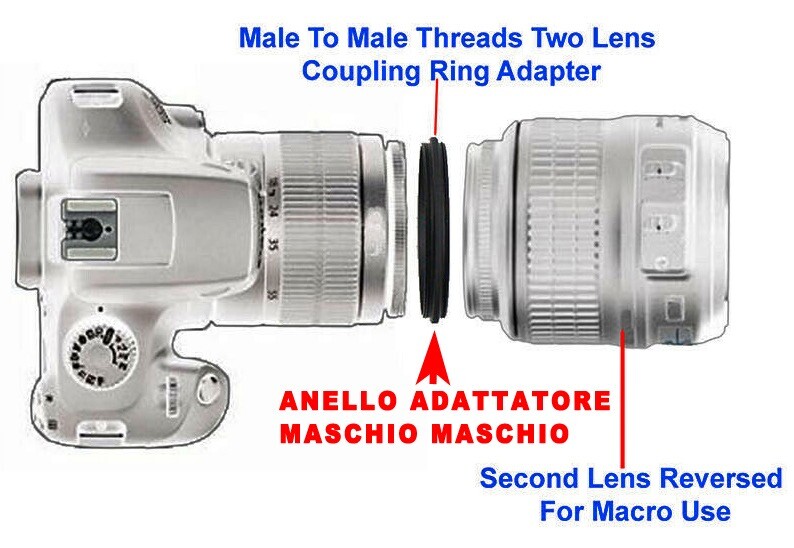Anello Inversione Macro Maschio Maschio 52Mm 52Mm 52Mm-52Mm ANELLO CON DOPPIA FILETTATURA MASCHIO DA 52MM-55MM ANELLO CON DOPPIA FILETTATURA MASCHIO-MASCHIO SU ENTRAMBI I LATI DELLÕADATTATORE. anello inversione macro adattatore adapter reverse ring lens obiettivo compatibile con nikon 52mm 52 mm d5600 d5500 d5300 d5200 d5100 d5000 d3500 d3400 d3300 d3200 d3100 df d3600 d780 : : elettronica ... lato obiettivo GRAZIE A QUESTO ADATTATORE POTRETE OTTENERE UN EFFETTO MACRO CON UNA SPESA MINIMA, SENZA BISOGNO DI ACQUISTARE COSTOSI TUBI MACRO. LÕANELLO VA UTILIZZATO SOLO ED ESCLUSIVAMENTE PER FARE FOTOGRAFIE MACRO A POCHISSIMI CENTIMETRI DI DISTANZA DAL SOGGETTO FOTOGRAFATO; INFINE SI CONSERVANO GLI AUTOMATISMI TRA CUI LÕAUTOFOCUS, MA SPESSO POTREBBE ESSERE MEGLIO METTERE A FUOCO SEMPLICEMENTE SPOSTANDOSI AVANTI ED INDIETRO DI POCHI MILLIMETRI DAL SOGGETTO CHE FOTOGRAFATE. PRODOTTO GENERICO COMPATIBILE. FILETTATURA MASCHIO 52MM FILETTATURA MASCHIO 55MM UNICO VINCOLO EÕ QUELLO DI MONTARE COME OBIETTIVO ATTACCATO AL CONTRARIO, CIOEÕ COME SECONDA OTTICA, UN OBIETTIVO CON GHIERA DEI DIAFRAMMI MANUALE PER PERMETTERE DI APRIRE IL DIAFRAMMA MANUALMENTE. LÕANELLO PUO ESSERE USATO DA ENTRAMBI I LATI DELLA FILETTATURA; CIOEÕ SI PUO' MONTARE CIASCUNO DEI 2 OBIETTIVI AL CONTRARIO, OPPURE CIASCUNO DEI 2 OBIETTIVI AGGANCIATI ALLA FOTOCAMERA, A SECONDA DI QUALE DEI 2 PREFERITE MONTARE AL CONTRARIO E QUALE DEI 2 AGGANCIATO ALLA FOTOCAMERA.