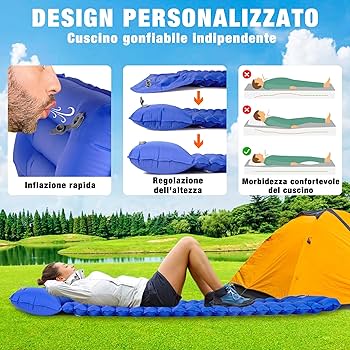 Materassino Autogonfiabile Da 10 Cm Con Pompa A Pedale E Cuscino Materassino Gonfiabile Materasso Ad Aria Da Campeggio Impermeabile Per Uso Esterno