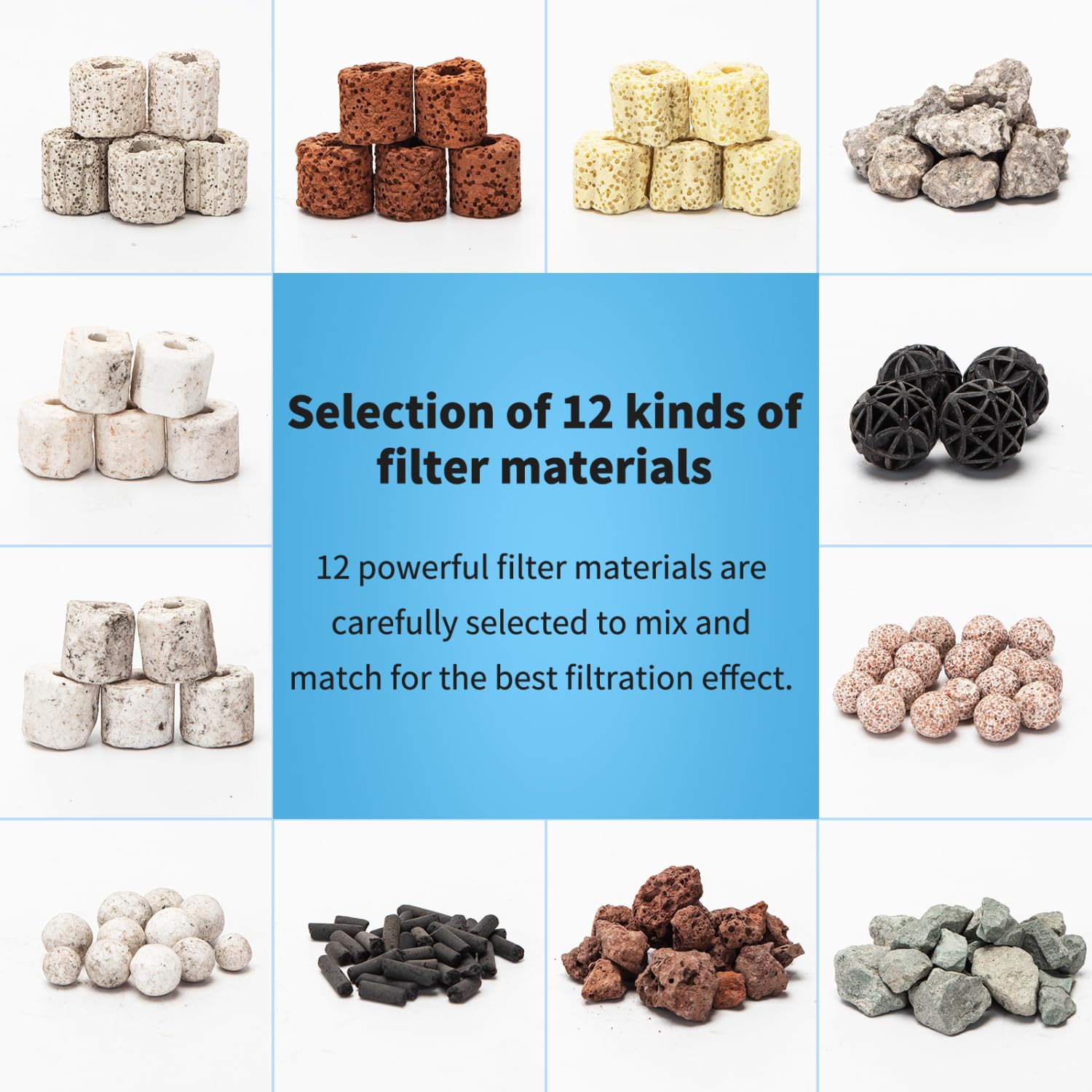 Nobleza - 12 in 1 Materiale Filtrante Acquario , Anelli in Ceramica, Filtro Poroso, Filtro Biologico per Acquari e Vasche per Pesci (500g Pulizia e manutenzione facili: il materiale filtrante può essere facilmente rimosso per la pulizia o la sostituzione, facile manutenzione, prolungando la durata e risparmiando tempo ed energia preziosi. EFFICACE PRESTAZIONI DI FILTRAZIONE: la formula avanzata del materiale filtrante migliora notevolmente l'efficienza di filtrazione e cattura efficacemente impurità, particelle sospese e inquinanti nell'acqua per garantire una vita sana per i tuoi pesci. Combinazione di materiali filtranti multifunzione: questo materiale filtrante per acquari è stato accuratamente assemblato da dodici diversi materiali filtranti di alta qualità, che offrono un effetto filtrante completo e garantiscono acqua pulita. In questo modo è possibile godere dell'effetto filtrante e allo stesso tempo contribuire alla tutela dell'ambiente. Carboni Attivi Per Acquario Celestia Materiale Filtrante Per Acquario, Mezzo Filtrante Per Acquario Biocondizionatore Acquario Imballaggio a rete ecologico: il prodotto è confezionato in una rete che è facile da aprire e riduce gli sprechi di materiale.