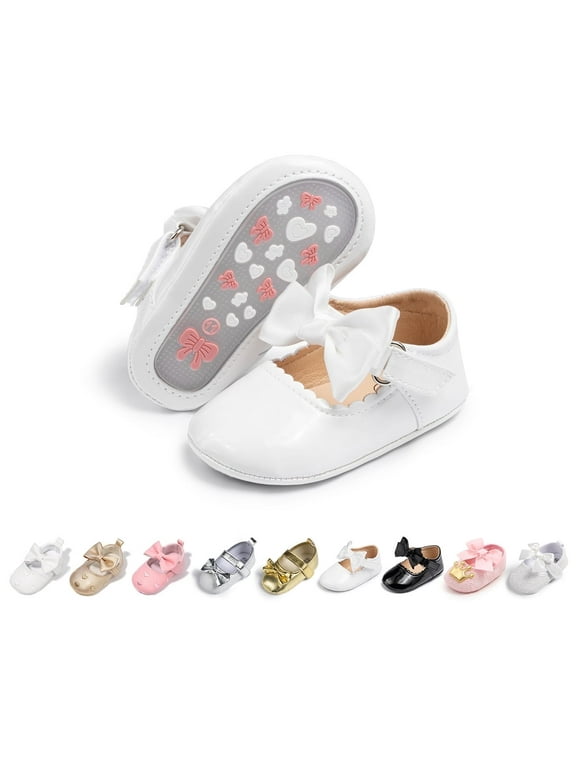 Meckior Toddler Baby Girls Dress Shoes, Soft Sole Mary Jane Bowknot Wedding Flats, 3-18M