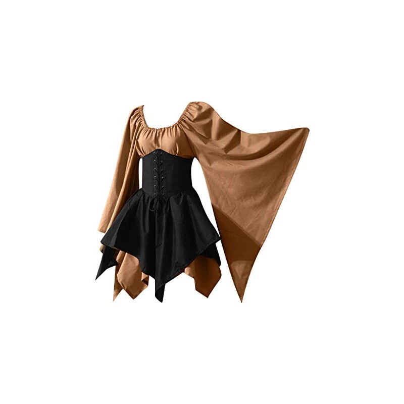 GilRu Abito Gotico Vintage Medievale Con Maniche Medie E Scollo Quadrato Per Donna Abito Donna Lunghezza Al Ginocchio Beige Xxl 122786444