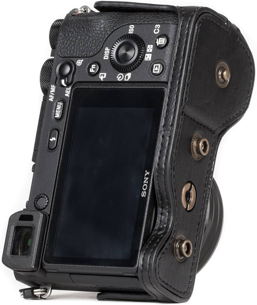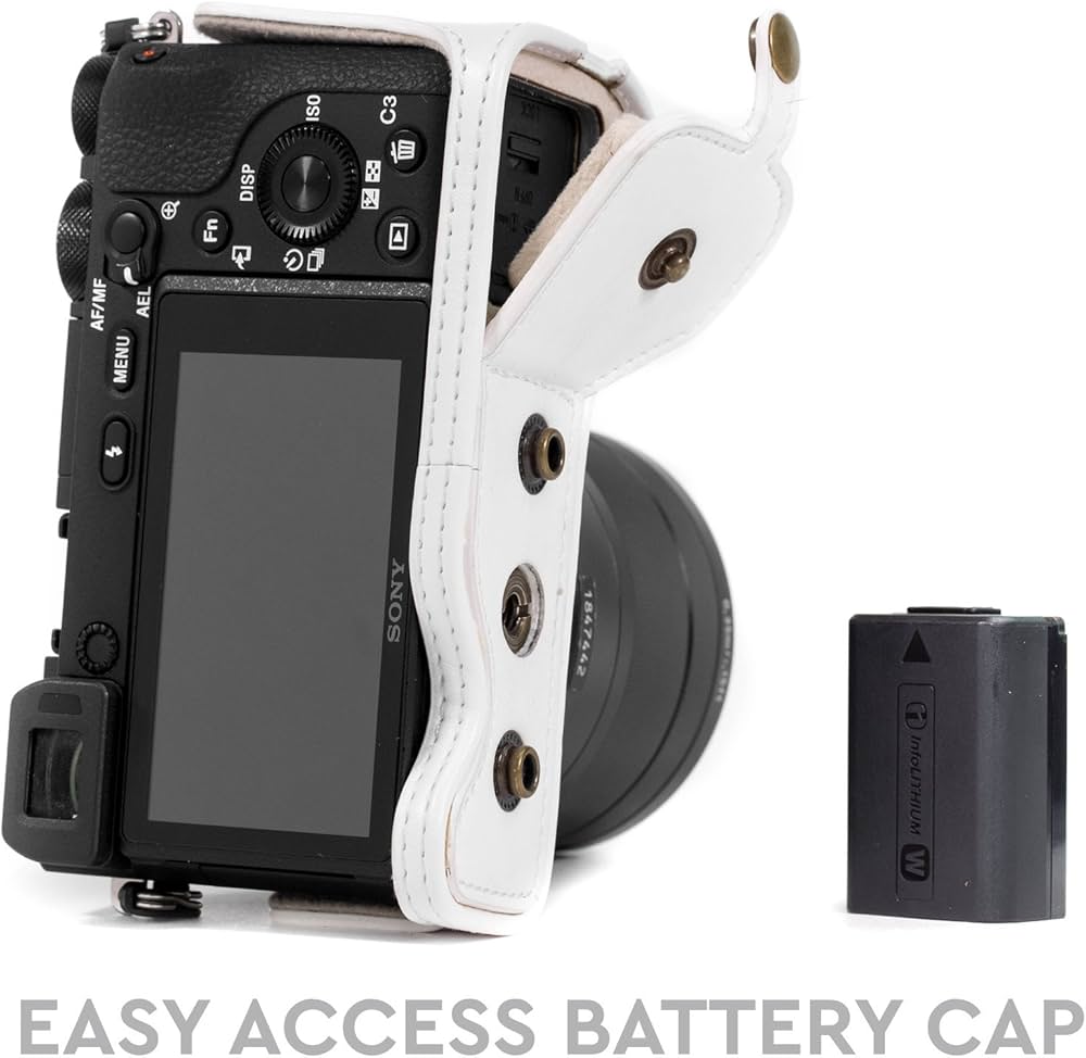 Tieni al sicuro la tua Sony Alpha A6500 (obiettivo fino a 16-70 mm) con la custodia protettiva in pelle per fotocamera MegaGear Ever Ready con accesso alla batteria. Questa custodia è realizzata per i fotografi che desiderano riflettere la propria arte Sony Alpha A6500 Custodia in pelle Semplice e funzionale - È possibile accedere alle porte periferiche, alle slot per le schede di memoria, alla batteria e installare la macchina fotografica sul treppiede senza togliere la custodia! Realizzata su misura - la custodia metà copertura in vera pelle con Accesso alla Batteria è appositamente realizzata con pelle di alta qualità per fotocamere Sony Alpha A6500 Pratica - le sue caratteristiche consentono un uso pratico e veloce della fotocamera Fotocamera Sony MegaGear Ever Ready MG965 - Funda De Piel Con Correa Para Cámara Sony Sony A6400 Alta protezione - Grazie alla sua alta resistenza e al suo design su misura, questa custodia offre protezione al corpo della fotocamera dai graffi