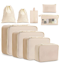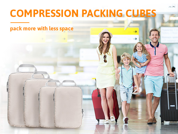 Meowoo Organizer Valigia 5 Pezzi - Packing Cubes Compression - XL, 2×L, 2×M - Organizer Da Viaggio Salvaspazio Per Valigie - Viaggio Accessori Utili - Ideali Per Vacanze E Spazi Ristretti - Beige