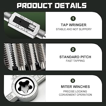 Descrizioni:Il maschio a filettare adotta un design a flauto dritto, con filetti chiari e senza sbavature. Velocità rapida con piccolo coppia; velocità lenta con alta coppia. La vigoria deve essere uniforme nelle operazioni di maschiatura. Utilizzare un lubrificante appropriato per ridurre l'attrito e l'accumulo di calore. Set di Punte e Maschi per Filettatura: Dimensione del maschio a filettare: 3-48 UNC (destra); dimensione della punta da trapano a spirale: 2.1mm (destra). Offre tagli ordinati e lisci. Non consigliato per l'uso a mano e la maschiatura con trapano elettrico. Suggerimenti: Prima di maschiare, forare i fori con una punta da trapano a spirale. La punta da trapano a spirale adotta un design di spazio per trucioli a flauto per rimuovere rapidamente e pulitamente i trucioli. Il maschio a flauto dritto è adatto per fori passanti o fori ciechi poco profondi. La profondità di maschiatura non dovrebbe superare 1,5 volte il diametro del maschio. Il set di maschi e punte da trapano in acciaio ad alta velocità 6542 (M2) offre un'eccellente resistenza al calore e durezza per durata e longevità, e una buona capacità di taglio per fori puliti e precisi. Maschio a Filettare: Design a flauto dritto, filetti chiari e senza sbavature, rimozione dei trucioli versa il basso, maschiatura rapida e precisa. La profondità di maschiatura non dovrebbe superare 1,5 volte il diametro del maschio (ad esempio, il diametro M5x0.8 di circa 5 mm, la profondità non dovrebbe superare 7,5 mm). Punte Per Filettatura Maschi Mesee Set Di 5 Maschi Per Filettatura, Maschi Per Filettare A Macchina Punte Per Filettare In Acciaio I bordi di taglio offrono tagli ordinati e lisci. Utilizzato per ghisa, alluminio, acciaio inossidabile, acciaio al carbonio, lega di alluminio, bronzo e plastica dura. Punta da Trapano a Spirale: Design di spazio per trucioli a flauto per rimuovere rapidamente e pulitamente i trucioli. L'angolo di maschiatura dovrebbe essere verticale e stabile a 90 gradi.