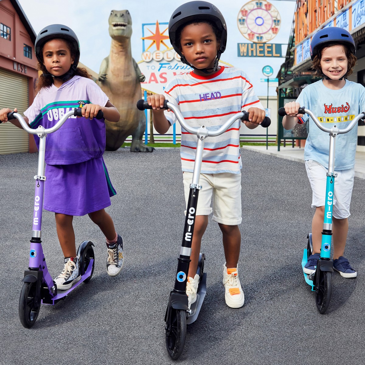 Micro Cruiser è il primo monopattino per ragazzi con grandi ruote. Più grandi sono le ruote, più gli spostamenti diventano facili e agevoli e minore è la fatica. Le ruote da 200 mm risentono meno le asperità di terreni non sempre perfettamente uniformi Comfort e stabilità grazie alle due grandi ruote con Micro Cruiser! Il manubrio regolabile in altezza da 65 a 84 cm si adatta perfettamente alle dimensioni del bambino e si evolverà con lui Da 7 a 12 anni, e anche oltre potrà trasmettersi nella fratellanza Questo monopattino si dirige come una bicicletta con il suo manubrio tipo chopper che ruota a 360° e offre un migliore controllo. Il monopattino Micro Cruiser Nero, comodo grazie alle sue grandi ruote! I +: La tavola bassa e le grandi ruote da 200 mm che offrono una guida confortevole Il manubrio tipo chopper che offre un migliore controllo Qual è la differenza tra Micro Cruiser e Micro Sprite? Le ruote della Micro Cruiser sono 200 mm e sono molto confortevoli, mentre le ruote della Micro Sprite sono 120/100 mm Il manubrio della Cruiser tipo chopper offre comfort di guida Il manubrio della Sprite (59-89 cm) è leggermente più alto di quello della Micro Cruiser (65-84 cm) Monopattino Adulto A Spinta Monopattino Micro Cruiser Nero MICRO - MP40300 LED Neochrome Scooter Grazie alle ruote grandi e alla tavola molto bassa, il bambino si muoverà con facilità per una guida sempre più morbida Pieghevole rapidamente e dotato di un cavalletto, si mostra molto versatile e si adatta a qualsiasi situazione: viaggia ovunque molto facilmente.
