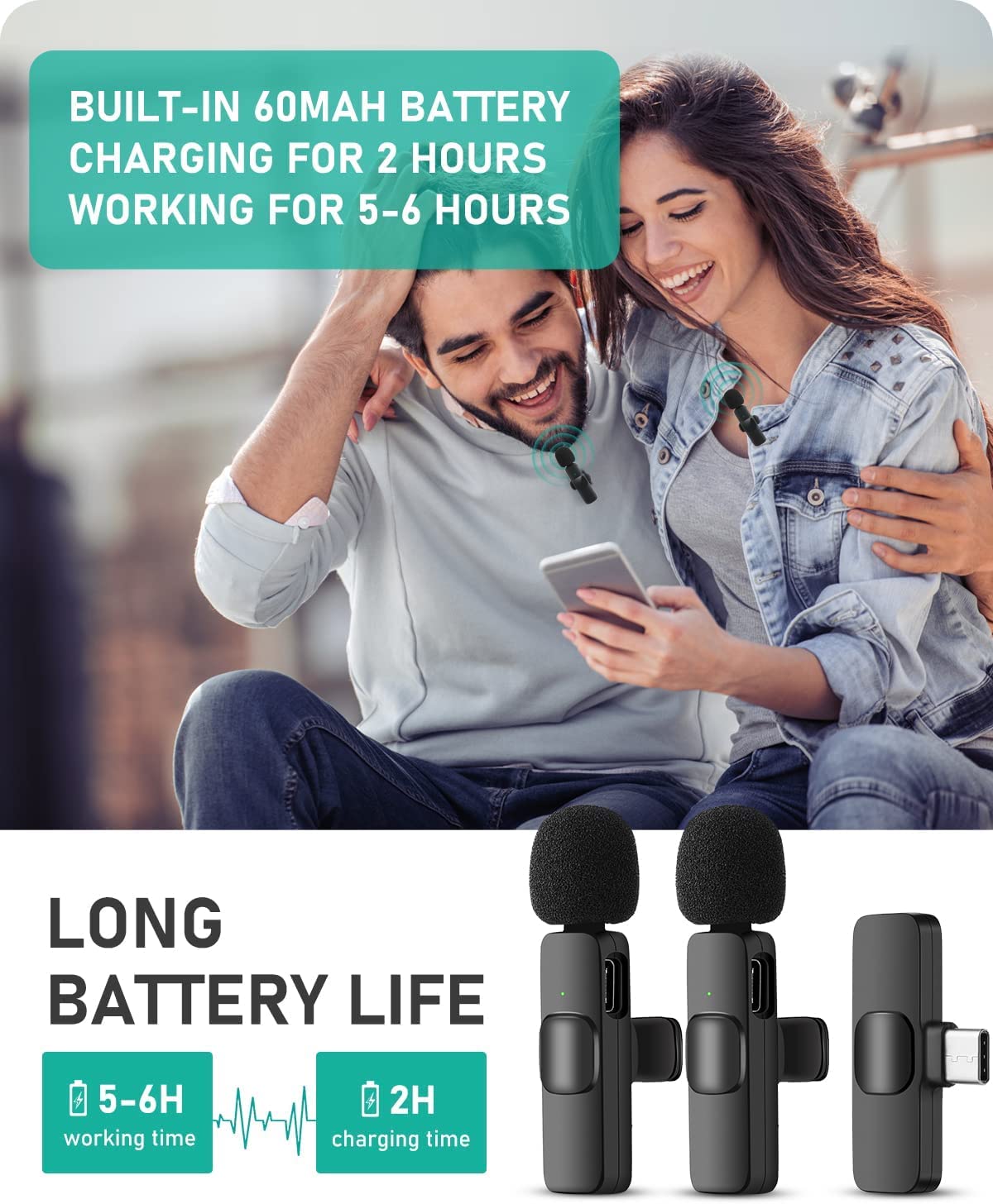 Microfono Wireless Per IPhone/Androide,Microfono Lavalier Wireless,Microfoni Lavalier Plug,Microfono Lavalier Wireless Riduzione Del Rumore Per TikTok, Youtube,Vlog Registrazione Video, Live Stream