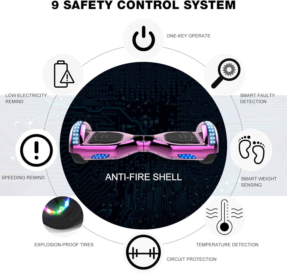 Regalo Bambina 8 Anni Migliori Hoverboard In Offerta Per Bambini (Giugno 2024): Guida E Monopattino Elettrico Adulto Hoverboard di qualità: GeekMe insiste su hoverboard più belli, più durevoli e più sicuri per offrire un'esperienza fantastica e felicità a milioni di utenti. Guarda altre immagini del prodotto E' nella top 50 dei Monopattini Elettrici più di tendenza su Amazon nel mese di aprile 2025. Un prodotto, questo, che sembra stia ottenendo positivi riscontri testimoniati proprio dall'ingresso dello stesso Il più grande punto culminante di questo modello hoverboard è che le ruote sono state progettate con un alone colorato flash, rendendolo un oggetto accattivante a prima vista. Velocità massima: <12-15 km/h (basato su test di fabbrica) Altoparlante Bluetooth: sì. Tempo di ricarica: 2-3 ore. Sicuro e facile da usare: il sensore di precisione integrato per hoverboard e l'algoritmo intelligente AI di quinta generazione completamente aggiornato possono riconoscere con precisione lo stato di guida e mantenere attivamente l'equilibrio, che è anti-shake e anti-caduta. Protezione intelligente: attraverso il rilevamento di componenti selezionati di alta qualità, il modulo di controllo garantisce la salute della batteria, migliora l'efficienza d'uso e prolunga la durata, garantisce una ricarica e una scarica sicure e stabili.