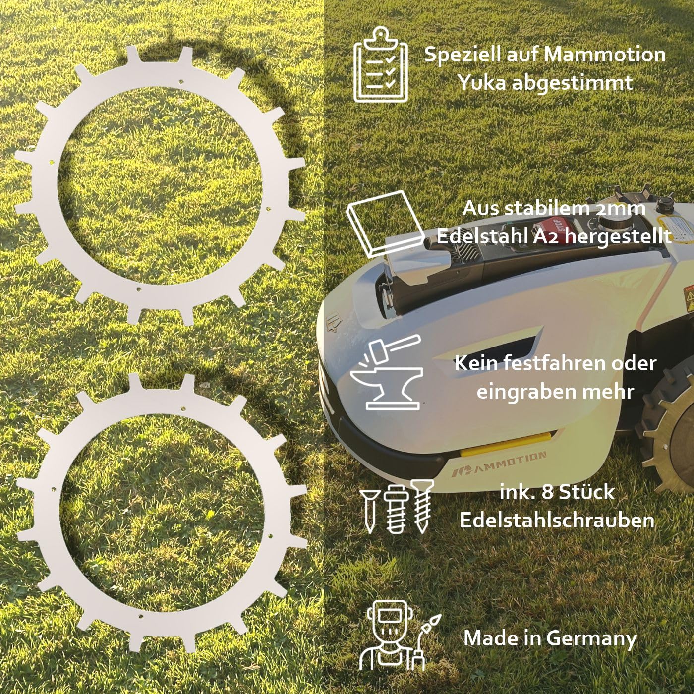In questo modo si impedisce un bloccaggio e un successivo scavo delle ruote motrici del robot tosaerba. Montaggio molto semplice: le viti in acciaio inox M4 con testa per gioielli vengono avvitate con inserti filettati già esistenti Bel prato meno cadute: le punte in acciaio inox assicurano che il robot tosaerba non si attacchi più e scavi fori nel prato. Contenuto della 2 punte per tosaerba appositamente progettate per il robot tosaerba Yuka. Acciaio inossidabile di alta qualità: le nostre punte per robot tosaerba sono realizzate in acciaio inossidabile e levigate in un'ulteriore fase di produzione Poiché il tosaerba continua a rimanere bloccato in questi luoghi, si riprendono molto lentamente. Bel prato meno guasti: le punte in acciaio inox assicurano che il robot tosaerba non si scolorisca più e scavi fori nel prato. Yuka Mini 800 Pointes Pour MAMMOTION YUKA Mini - Acier Inoxydable - Ébavuré - 6 Vis Punte Per Inox Punte per robot tosaerba Yuka, in acciaio inox Le punte in acciaio inossidabile di alta qualità garantiscono una migliore trazione del vostro robot tosaerba. Compatibile con: MAMMOTION YUKA Mini autocentrante Con i picchi, hanno significativamente meno errori e guasti nel funzionamento del tosaerba. Le viti in acciaio inox M4 con testa gioielli vengono avvitate negli inserti filettati già esistenti Le nostre punte garantiscono un prato più bello e meno stress con il vostro robot tosaerba, anche se diventa difficile. Tuttavia, con le punte, il tosaerba riceve più trazione e non scava più. Vantaggi dei picchi per Yuka Mini Acciaio inossidabile di alta qualità: le nostre punte per robot tosaerba sono realizzate in acciaio inox e levigate in una fase di produzione aggiuntiva.