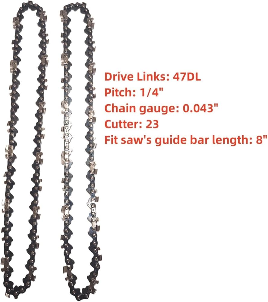 Collegamento di trasmissione 47E; La confezione include: 2 catene for sega Design avanzatoQuesta sostituzione della catena della motosega è progettata for proprietari di case e paesaggisti, le basse vibrazioni e il basso contraccolpo offrono prestazioni eccezionali. ByoBLu Mini catena for sega da 2 pezzi/set da 8 pollici da 1/4 di pollice; Passo 043 pollici; Catene for motosega calibro 47L Realizzato in acciaio di alta qualità con tecnologia eccellente. Controlla i tuoi parametri for assicurarti che la catena sia adatta alla tua macchina. Verifica la catena della tua motosega, prima dell'acquisto, lo stesso modello di mini motosega può essere equipaggiato con catene diverse. Rivetti temprati for garantire che la catena della motosega funzioni più a lungo, abbiamo indurito e temprato tutti i rivetti della catena, offrendo una superficie portante di alta qualità che resiste all'usura e migliora la resistenza. Caratteristiche. La stessa sega può essere dotata di lame di diverse lunghezze. Realizzato in materiale di alta qualità, puoi usarlo con sicurezza. Catena Motosega 8 Pollici Mini Catena Per Motosega Da 8 Pollici Guida Da 1/4 Mini Motosega 8 Pollici