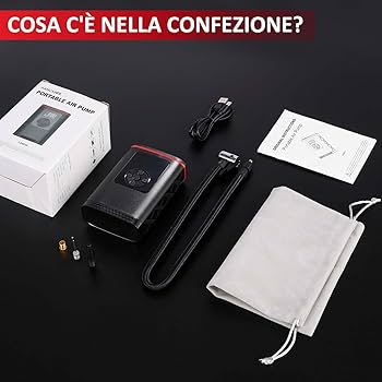 【Facilità di trasporto】Questo compressore portatile per auto progettato per essere comodo da tenere in mano e il suo formato compatto permette di riporlo facilmente nelle cassette degli attrezzi dell'auto, nel portapacchi della bicicletta, nello zaino o nelle tasche. Questo dispositivo pompa l'aria in modo preciso e si spegne automaticamente quando la pressione dei pneumatici raggiunge il valore preimpostato, offrendo un'esperienza d'uso sicura, rapida e affidabile. Non fare mai viaggi senza avere questo mini compressore portatile con capacità di 6000mAh e potenza da 150PSI che adesso puoi avere a 29€. Michea Elia Pubblicato il 11 dic 2024 Se per disgrazia mentre sei in viaggio, magari per andare su una Compressore Aria Portatile Auto AIKER Mini Compressore Aria Portatile,2X Gonfiatore Più Veloce 150PSI Pistola Aria Compressa Puoi gonfiare ovunque e in qualsiasi momento! Si prega di notare che non è adatto per gonfiare i pneumatici di camion, autobus, furgoni, ecc. 【Luci LED】 Il mini compressore portatile di luci LED che forniscono illuminazione in condizioni di scarsa luminosità. 【Ampia applicazione】Questo compressore aria portatile perfetto per gonfiare auto, motociclette, biciclette, palloni, anelli da nuoto e altri oggetti gonfiabili. 1 BATTERIA DI LUNGA DURATA 2 LUCE LED ILLUMINANTE 3 FUNZIONALITA 2 IN 1 4 FACILE DA USARE