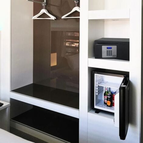 frigobar classico hoteles portaoggetti vano hotel mini neveras retirada barcelona Caratteristiche Tecniche Mini Frigo per Hotel 30 Litri Vama Minibar Top Nero * Colore: Nero (PVC) * Tipo installazione: da incasso o libera installazione * Classe Energetica: F * Volume refrigerato: 32 lt * Dimensioni: 475 x 385 x 455 mm * Peso: 10,9 kg * Potenza Assorbita: 63W * Consumo Giornaliero: 0,266 kWh/24 * Consumo annuo: 90 kWh * Numero ripiani interni regolabili: 4 * Termostato elettronico * Sbrinamento automatico * Luce interna a LED basso consumo * Porta reversibile * Contiene bottiglie da 1 lt e 1,5 lt * Gancio traino porta * Refrigerante R600a * SILENZIOSITà TOTALE CERTIFICATA SGS Altri Elettrodomestici Gamma completa adatta a tutte le esigenze, ideale per hotel, residence, B&B e tutti i contesti dedicati all'ospitalità, come pure per aziende ed uffici. Freezer Piccolo Mini Frigo Bar à Porte Vitrée Noir - 30 L - Fourniresto Frigo Piccolo L'innovativo di refrigerazione Peltier / pompa di calore consente di abbattere i consumi elettrici a soli 0,266 kw/h al giorno contro i 0,6 - 0,7 Kw/h dei modelli comuni ad assorbimento o a compressore. Funzionano in assenza totale di ammoniaca o altri gas pericolosi per l'ambiente e l'utilizzatore.