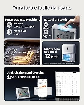 Progettati per un monitoraggio ottimale dell'aria interna, consentono di misurare una temperatura tra -50~+70℃ (precisione ±1.0℃) e umidità di 20~90%RH (precisione ±5%RH a 25℃). Si adatta perfettamente a spazi ristretti, fornendo misure precise per mantenere una qualità dell'aria ottimale. Alimentato da una batteria a bottone LR44, questo sensore compatto consuma poca energia, garantendo una maggiore durata. 3 Pezzi Mini Termometro Igrometro Digitale Monitor di Temperatura e umidità Ambiente Interno Termoigrometro per Casa, Ufficio, Camera da Letto, Cameretta, Magazzino, Cantina, Auto (Nero Permette di controllare efficacemente le condizioni ambientali per un ambiente più sano. Monitoraggio preciso della temperatura e dell'umidità con questo set di 3 mini termometri igrometri digitali. Miglior Termometro Per Casa 3 Pezzi Mini Termometro Igrometro Digitale Monitor Di Temperatura E Mini Termometro Digitale Semplice installazione e formato diretto: grazie al suo design minimalista, questo termometro igrometro portatile può essere posizionato ovunque senza ingombrare il tuo spazio. Il suo formato compatto e discreto lo rende perfetto per l'uso quotidiano senza ingombro. PRECISA MONITORAGGIO DELLA TEMPERATURA E DELL'UMIDITÀ – Questo termometro igrometro digitale offre una misurazione affidabile con un intervallo di temperatura di -50~+70℃ (precisione ±1.0℃) e umidità di 20~90%RH (precisione ±5%RH a 25℃). Uso versatile per diversi ambienti: questo set di 3 igrometri digitali è ideale per monitorare l'aria interna in casa, nella stanza dei bambini, nella serra, nella cantina, nel magazzino, nella soffitta, nello spogliatoio, nelle parti di strumenti musicali e molto altro ancora. Il suo design leggero e circolare consente una facile installazione in vari spazi della casa.