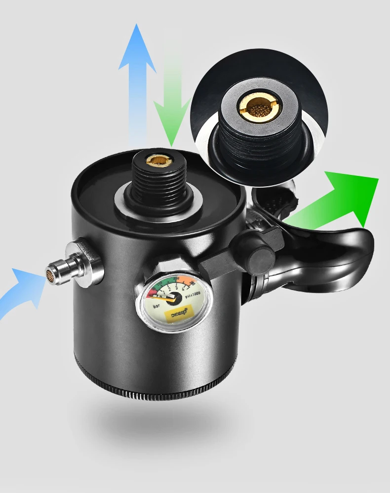 Il tappo antipolvere professionale su misura protegge l'ugello di ingresso dell'aria per evitare urti e influire sulle prestazioni, 3 tipi di gonfiaggio in base all'uso degli scenari tra cui scegliere, la pressione massima di gonfiaggio: 3000 PSI/200BAR/2OMPA. 2 - valvola limitatrice di pressione per rilasciare la pressione, premere per rilasciare la pressione di sfiato dell'aria. Mini Scuba Tanks GOYOJO 0.5L Mini Tank Dive Scuba, 5-10 Minuti Subacquea Dispositivo Di Respiro Portatile Immersione Cilindro Di Immersione Kit Di Serbatoio Di Ossigeno 10M Acqua Profonda Airbuddy Immersioni Capacità del gas: 100L (aria compressa) Dimensioni: Lunghezza: 35,3 cm 5,71 cm di diametro Design della bocca della bottiglia: 1 - strumento luminoso, resistenza alla pressione profonda visibile a colpo d'occhio, profondità subacquea di 80 metri è ancora chiaramente visibile. Dettagli d'uso: La pressione del cilindro dell'ossigeno non deve superare i 20 MPa (es. Numero di respiri: circa 66 respiri per la superficie dell'acqua Tempo disponibile: 5-10 minuti Bottiglia di ossigeno portatile ARA: può essere immersa per circa 5 ~ 10 minuti, può essere utilizzata per la respirazione superficiale di circa 66 bocche d'aria, diverse profondità subacquee, anche il tempo disponibile varia. Trattamento multistrato per resistenza alla corrosione e ad alta pressione: la lega di alluminio con trattamento multistrato ha uno strato di spruzzatura completamente automatico, trattamento a specchio con lega di alluminio, stampaggio a caldo in lega di alluminio 6061 estrusione a caldo.