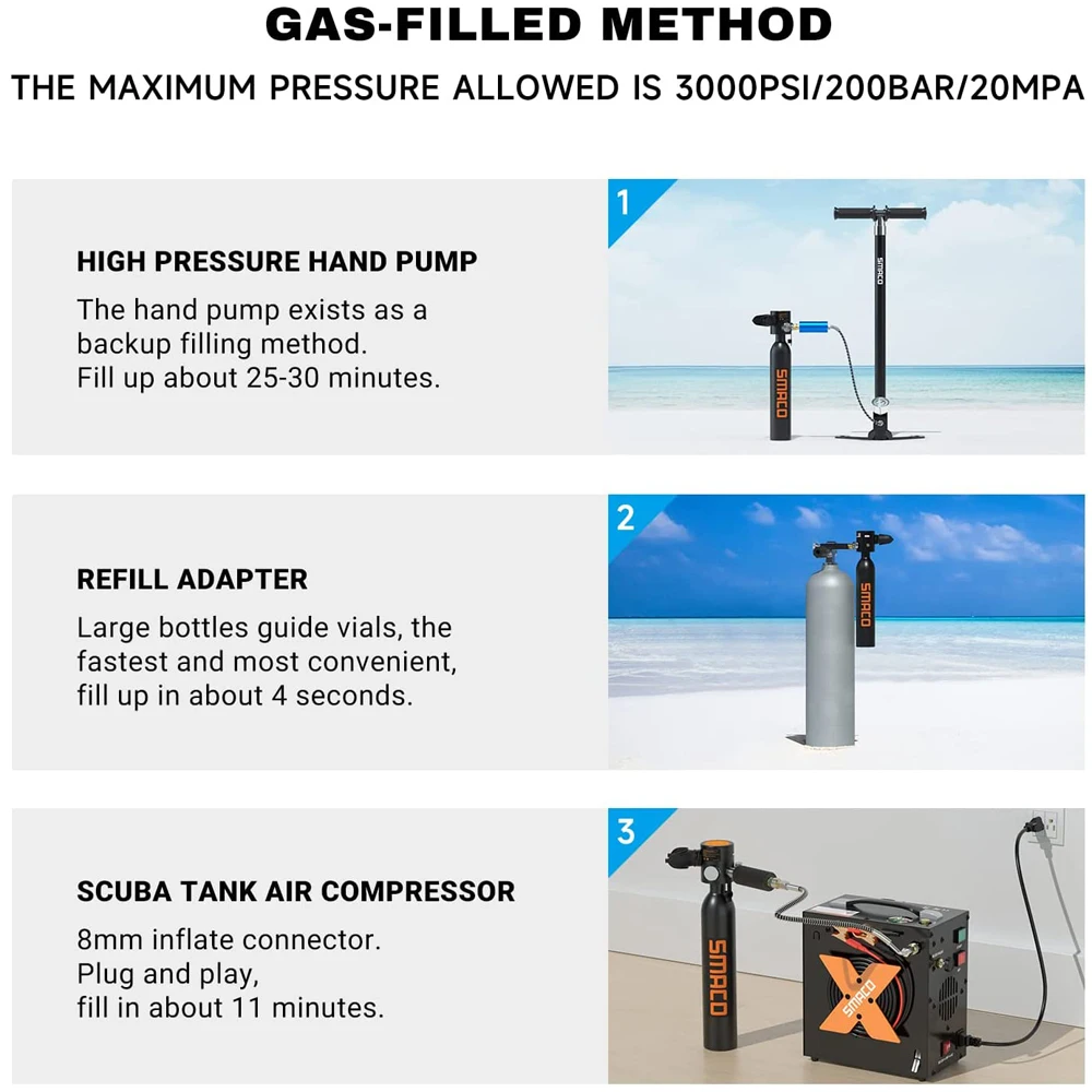 GOYOJO 0.5L Mini Tank Dive Scuba, 5-10 Minuti Subacquea Dispositivo Di Respiro Portatile Immersione Cilindro Di Immersione Kit Di Serbatoio Di Ossigeno 10M Acqua Profonda