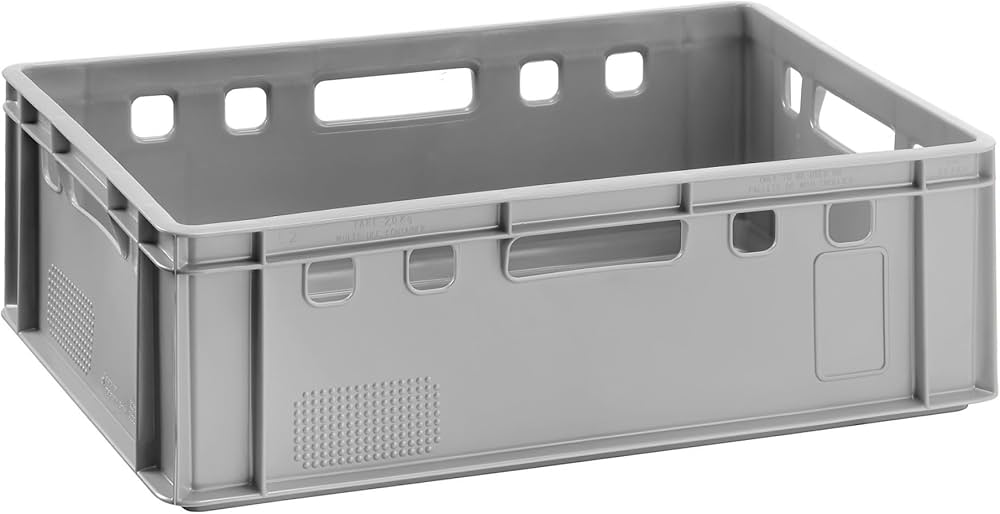 Materiale HDPE resistente agli urti: Le nostre cassette per carne europea sono realizzate in plastica HDPE resistente agli urti, che è abbastanza resistente da proteggere i vostri prodotti da eventuali danni. Accelera la raccolta e l'organizzazione del magazzino. Perfetto per operazioni efficienti. Le cassette BURI E2 sono la scelta ideale per macellai professionisti, distributori alimentari e chiunque abbia bisogno di soluzioni di stoccaggio di alta qualità. Con un peso di soli 2 kg per cassa, è possibile spostarli e impilarli facilmente. Prodotto in Germania in plastica HDPE resistente agli urti, estremamente robusto, durevole e resistente agli urti, al freddo e all'umidità. Peso della tara leggera: Nonostante la loro robustezza, queste scatole sono leggere e facili da maneggiare. Le superfici interne lisce consentono una pulizia rapida e accurata, perfetta per l'uso quotidiano in aree critiche per l'igiene. Ogni scatola pesa solo circa 2 kg. Il peso ridotto facilita la maneggevolezza quotidiana, anche a pieno carico. Sicuro e sicuro per uso alimentare. Set di 5 cassette per carne E2 da 40 litri ciascuna, ideali per macellai, catering e commercianti di alimenti. Dimensioni spaziose: Con dimensioni generose di 40 x 60 x 20 cm, queste cassette offrono un volume impressionante di 40 litri. Ciò faciliterà notevolmente l'organizzazione dei tuoi prodotti. 70gr simmenthal carne scatola carni Compatibile con altre casse elettroniche – facilmente impilabile per risparmiare spazio e trasporto sicuro. Queste robuste cassette sono prodotte in Germania e offrono una combinazione imbattibile di qualità e versatilità. Carni In Scatola Prezzi Come Misurare Correttamente Le Scatole Da Spedire Eurocarni E2 Grigio Ciò consente di risparmiare spazio prezioso e ottimizzare la logistica di magazzino. Le nostre cassette europee sono di qualità alimentare e soddisfano i più elevati standard di sicurezza alimentare. Versatile – non solo per carne: adatto anche per verdure, prodotti da forno, prodotti refrigerati, stoccaggio di essiccazione o come scatola stabile nell'industria e nell'artigianato. Puoi essere certo che i tuoi prodotti arrivino in perfette condizioni. Versatile cassetta per carne europea E2 – perfetta per lo stoccaggio e il trasporto. Le cassette si incastrano in modo stabile.