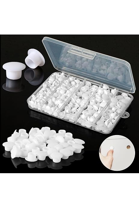 Tappi Di Plastica Dove Comprarli JCUGSBS 150 Pezzi 7 Misure Tappi Per Fori In Plastica,3/16,1/4,3/8,1/2,4 /5,1,1.18,Tappi Copriforo Tappi Copriforo Tappi Armadio Copriforo Per Cucina Armadio Mobilia (Nero&Bianco Tappi Copriforo A Pressione Quantità e dimensioni sufficienti per soddisfare le esigenze di uso quotidiano e sostituzione. ieron 6 misure di tappi per fori da 3/16, 1/4, 5/16, 3/8, 1/2, copertura per fori per trapano, confezione da 150 tappi di copertura in plastica per mobili da cucina (nero Dimensione del prodotto: 3/16 (50pcs), 1/4 (40pcs), 5/16 (30pcs), 3/8 (20pcs), 1/2 (10pcs), 1 (5pcs), 6dimensione da scegliere. Ampia applicazione: queste spine del foro assortite possono essere utilizzate per fori a vite, fori per unghie e altri fori rotondi su mobili come armadi, armadi, mensole, sedie, ecc. Abbellire cucine, soggiorno, camere da letto, uffici, ecc. Facile da installare: le spine del foro di mobili sono facili da usare e installare, è solo necessario scegliere la spina adeguata in base al diametro e allo spessore del foro e schioccarlo nel foro, semplice e conveniente. Materiale premium: le spine del foro dell'armadio sono realizzate in plastica di alta qualità, leggere, robuste, resistenti, resistenti alle lacrime, a prova di polvere, con un bel tampone e prestazioni di tenuta, garantisce una lunga durata.