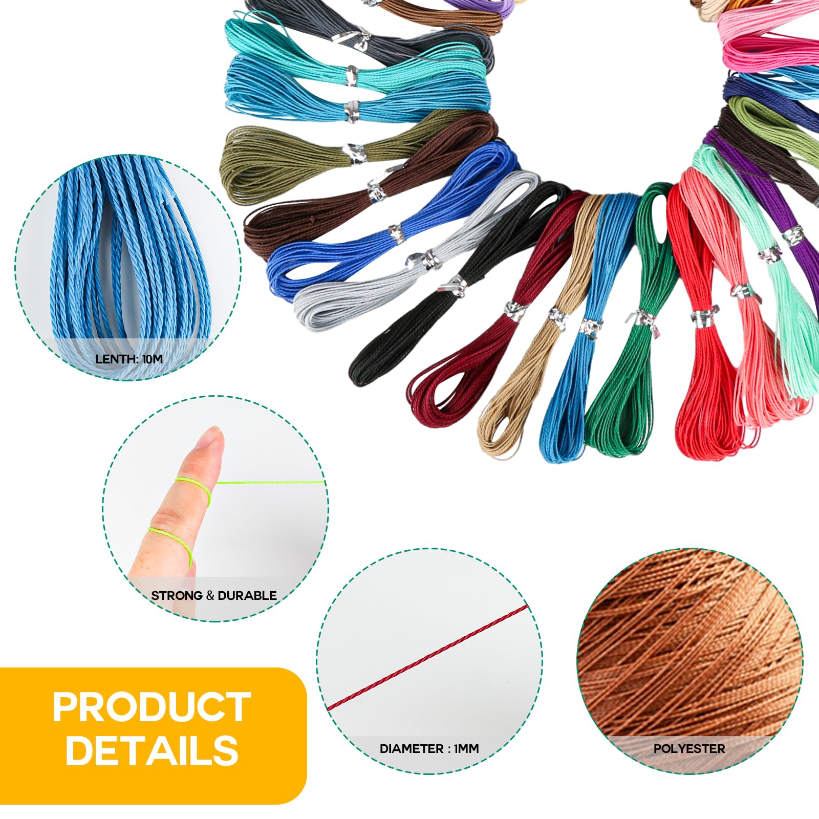 Cotone Cerato,Filo Cerato 12 Rotoli 1 Mm Multicolore Cordoncino Cerato Per Fai Da Te Collana Bracciale Mestiere Che Fa 120m