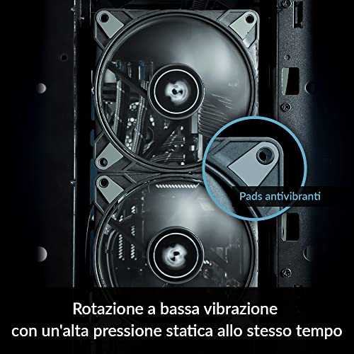 L'Arctic P8 Max è una potente ventola da 500 a 5000 giri /min. La ventola eroga una pressione statica di 5,3 mmH2O e genera un flusso d'aria fino a 40 cfm DATI TECNICI: Velocità ventola: 1600 RPM, Flusso d'aria: 15,6 CFM/26,5 m³/h (@ 1600 RPM), Livello di rumore: 0,08 Sone (@ 1600 RPM), Pin: 3-pin ESTREMAMENTE SILENZIOSO: Il rumore del nuovo motore ARCTIC è appena percettibile anche alla velocità massima o alla velocità più bassa. Garantisce un buon raffreddamento, anche con una maggiore resistenza dell'aria Silenzioso come un cuscinetto liscio, ma dalla durata molto maggiore Ventola Aspirazione 80mm ARCTIC P8-80 Mm Ventola Per PC, Ventola Silenziosa Per CPU, Ventola Ottimizzata Per La Pressione Statica, Velocità 3000 RPM, 0,3 Sone - Nero PWM PST LUNGA DURATA: Il cuscinetto a manicotto idrodinamico è dotato di una capsula dell'olio per prevenire la perdita del lubrificante.