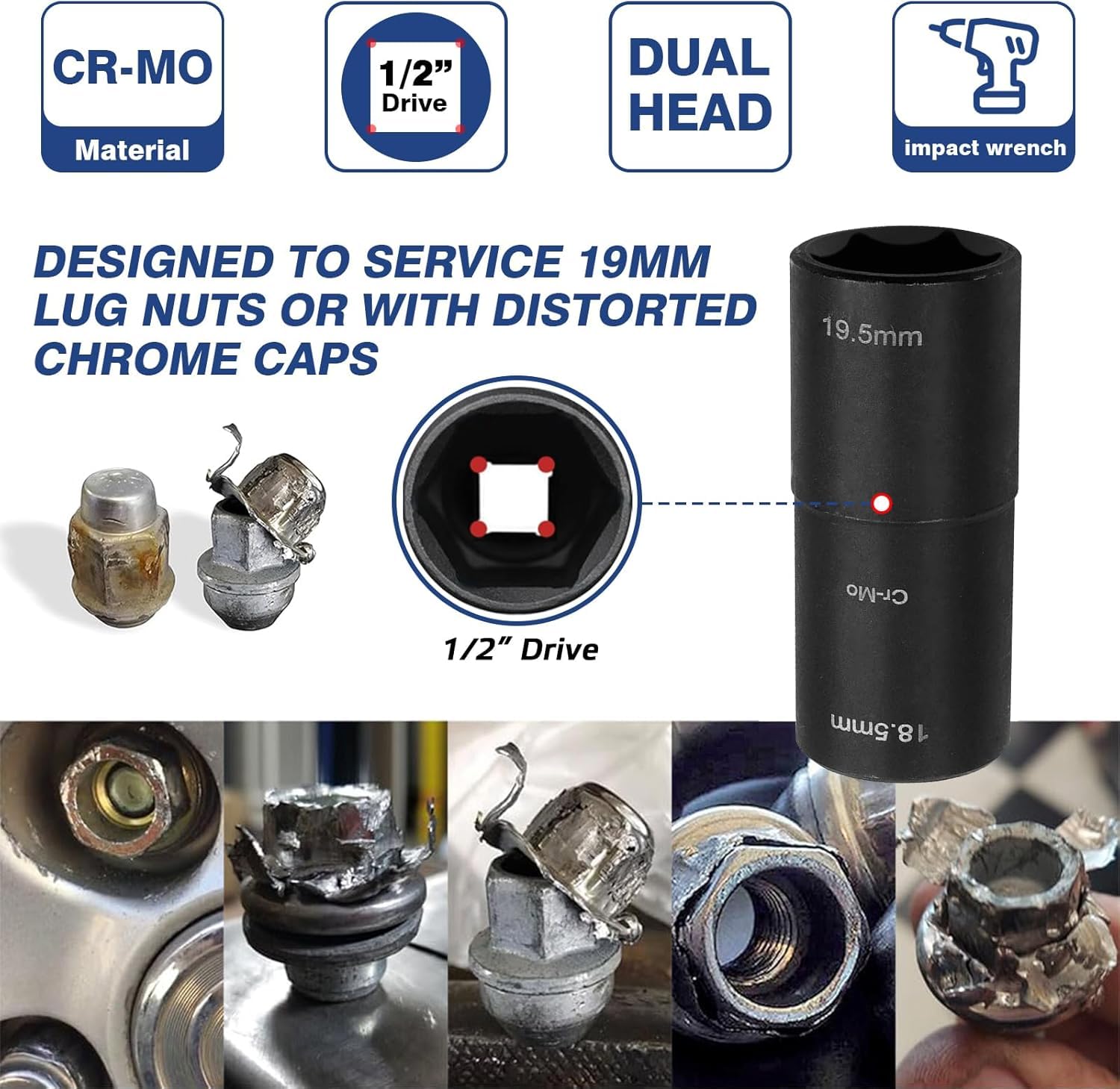 ZYNCUE Chiave A Bussola Per Dadi Ruota 18,5 Mm X 19,5 Mm Danneggiata, Lunghezza Profonda, Per Set Di Impatti, 1 Pezzo : Amazon.it: Auto E Moto