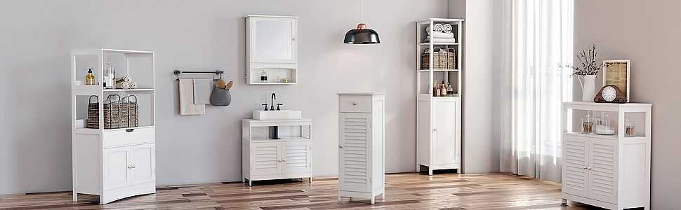 VASAGLE ARMADIETTO DA Bagno, Mobile Da Bagno Con Cassetto E Doppia Anta