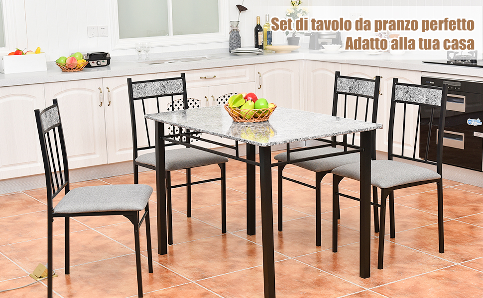 Vantaggi: Un tavolo da pranzo e 4 sedie con schienali Ampio piano con 4 angoli arrotondati. Peso netto: 23 kg Componenti: 1 tavolo da pranzo. 4 sedie. 1 manuale di istruzioni. Sia che si tratti di una cena in famiglia o di un incontro con amici, questo tavolo soddisferà le tue esigenze e porterà più calore e comfort ai tuoi pasti. Altezza adeguata: L'altezza delle sedie si adatta perfettamente al tavolo , permettendoti di mante Design vintage: le superfici del tavolo e delle sedie sono realizzate con venature realistiche del legno. Dimensioni della seduta: 38 x 37 cm (lunghezza x larghezza). Il robusto telaio in ferro e le assi di legno di alta qualità prolungano la durata di questo set da pranzo. Avviso di sicurezza Include avvisi di sicurezza sulla capacità di carico e la corretta installazione. Struttura stabile: il telaio della sedia è realizzato in ferro laccato, in modo che la struttura del tavolo da pranzo e delle sedie siano molto solide e dure. In questo modo il set da pranzo può essere adatto anche per spazi ristretti. Dimensioni del tavolo da pranzo: 120 x 70 x 75 cm (lunghezza x larghezza x altezza). Adatto a molti scenari Dati tecnici: Colore: naturale/faggio Materiale: legno e metallo. Set Da Pranzo Con Tavolo E Sedie Mobile Suite, Tavolo Da Pranzo Gruppo Sala Da Pranzo Con 4 Sedie, Per Balcone, Sala Da Pranzo, Soggiorno, Marrone Vintage - AliExpress Set Con Tavolo E Sedie Dimensioni dello schienale: 37 x 45 cm (lunghezza x altezza). Altezza seduta: 43 cm. E può offrirti una migliore sensazione di cibo. Struttura stabile con tappetini antiscivolo. Design salvaspazio. Puoi mettere le sedie sotto il tavolo quando non sono necessarie. Materiale di alta qualità: il set da cucina è realizzato in legno di alta qualità e rivestito in PVC. Set da 5 tavoli: questo set da pranzo da 5 pezzi contiene un tavolo da pranzo e 4 sedie con schienali, in modo che il gruppo da pranzo sia una buona scelta per riunioni di famiglia. Grazie al design salvaspazio e ai 2 colori diversi, si adatta a una varietà di stili di arredamento.