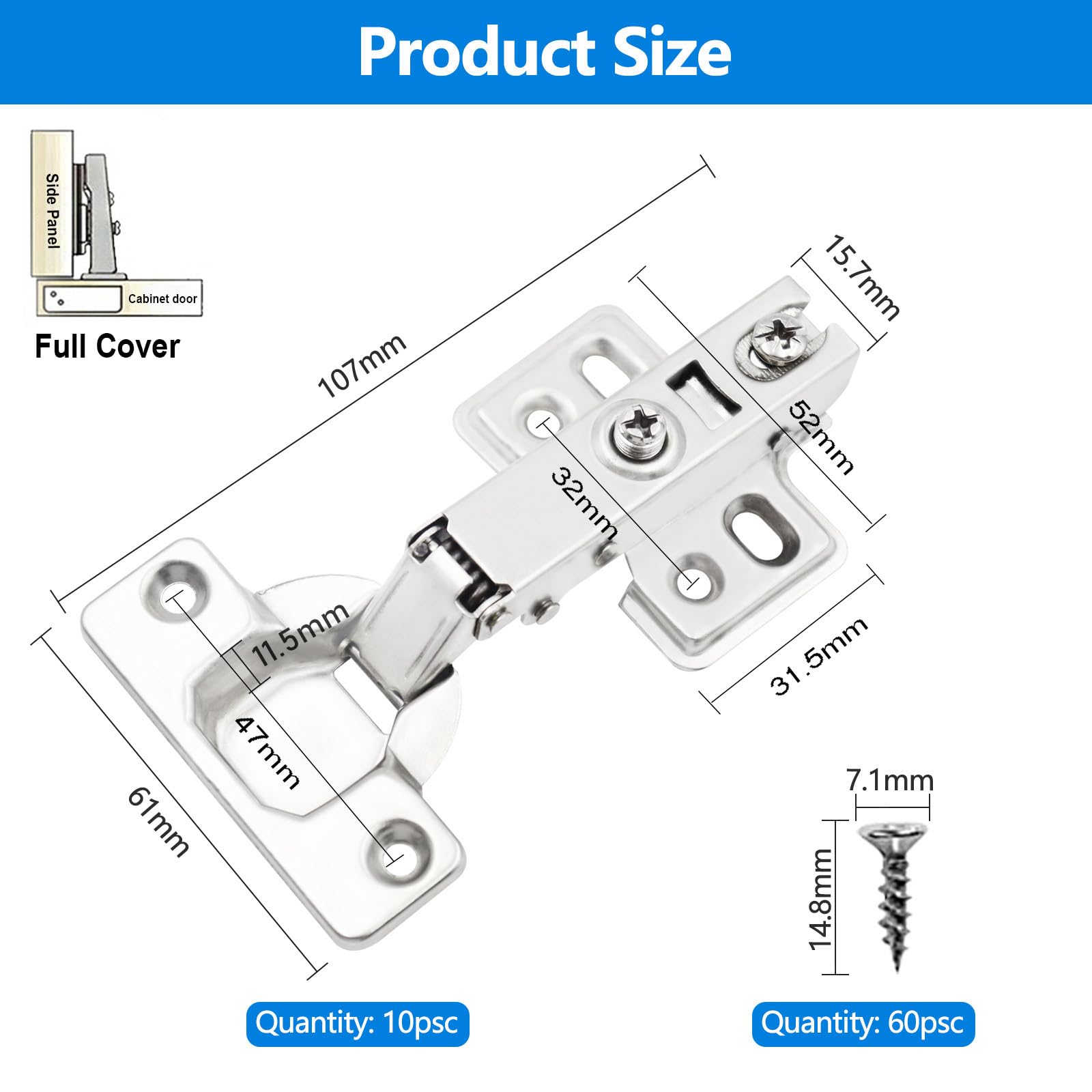 10Pcs Cerniera Per Mobili,cerniere Del Gabinetto, Freddo Rotolamento Cerniera Con Viti, Piena Sovrapposizione Muto Cucina Unità Cerniere Per Bagno Camera Da Letto Sala Da Pranzo