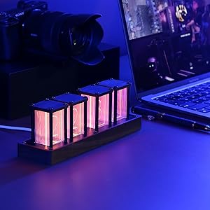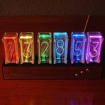 Orologio Da Scrivania Digitale Kyaoayo Nixie Tube Clock, Orologio A LED Nixie Con 2 Modalità Di Tempo Nixie, Orologio Tubolare Glow Tube Clock IPS Color Screen Digital Clock Per Casa, Camera Da Letto, Scrivania, Decorazione Flip Clock [Simulazione dell'orologio a tubo Nixie] Simulazione dell'orologio digitale RGB bagliore dell'orologio elettronico a tubo luminoso, installa 6 PCB RGB bagliore sul fondo e 10 pannelli di visualizzazione incisi a forma di numero sul RGB per illuminare il pannello di visualizzazione corrispondente per mostrare il numero che lo fa sembrare l'orologio a tubo nixe. [Semplice da usare] Dopo aver letto le istruzioni ti consentirà di cambiare colori e tempo senza installare alcun software o driver per PC. Compra ClocTeck Nixie Tube Clock, WIFI orologio da tavolo,LED Digital Clock, con LED che si illumina in stile retrò, moderno, in legno, alimentato tramite USB, decorazione per la casa, idea regalo. SPEDIZIONE GRATUITA su ordini idonei [Set sveglia e formato 12/24h] Questo nuovo stile orologio a tubo supporta il passaggio da 12 ore a 24 ore e impostazione allarme.