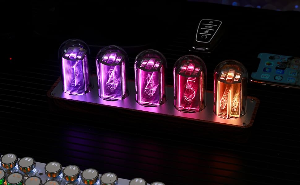 Kyaoayo Nixie Tube Clock, Orologio A LED Nixie Con 2 Modalità Di Tempo Nixie, Orologio Tubolare Glow Tube Clock IPS Color Screen Digital Clock Per Casa, Camera Da Letto, Scrivania, Decorazione