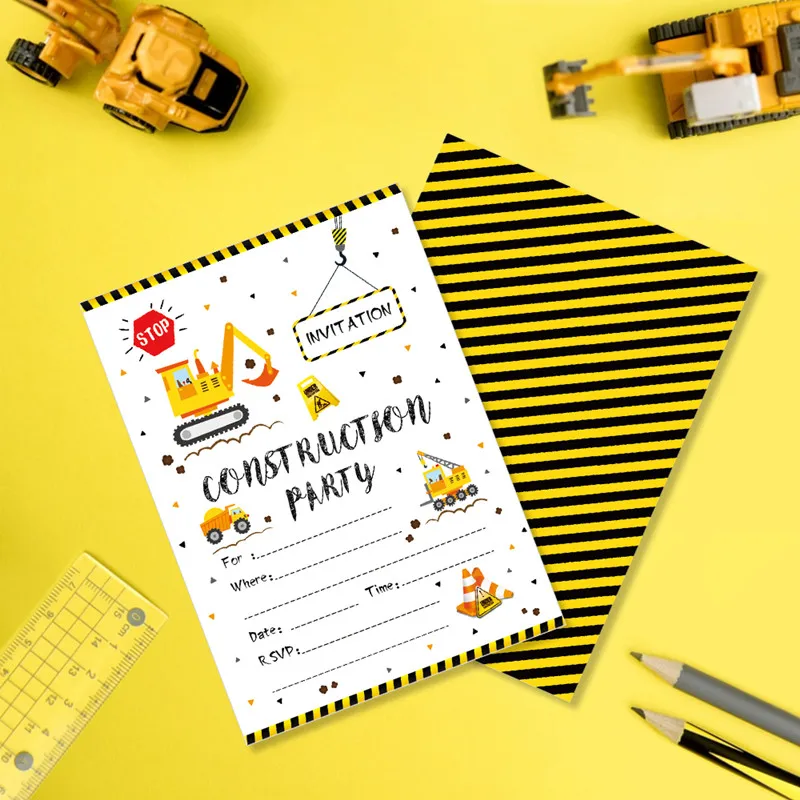 Buste Compleanno Bambini Modelli Gratuiti Per Inviti Di Compleanno Per Cantieri | Invitanku Biglietti Invito Compleanno Biglietto d'invito a tema escavatore: i nostri biglietti d'invito per bambini a tema escavatore sono caratterizzati da vivaci motivi a fumetti, che creano un'atmosfera di festa vivace. Gli inviti per le feste di compleanno dei bambini possono diventare un ricordo per i più piccoli: puoi conservare i biglietti d'invito e ricordare la loro festa di compleanno; puoi anche condividere i tuoi biglietti d'invito di compleanno con gli amici e rafforzare l'amicizia tra bambini. Festa Degli Escavatori - Modelli gratuiti per inviti di compleanno per bambini, crea il tuo invito con il nostro creatore di inviti , scarica o condividi i tuoi inviti sui social media con il monitoraggio RSVP gratuitamente Gli inviti per il compleanno dei bambini vengono realizzati utilizzando una speciale tecnologia di stampa fronte-retro per garantire che la parte anteriore degli inviti per il compleanno dei bambini sia colorata e che i dettagli sul retro siano chiari e facili da scrivere.