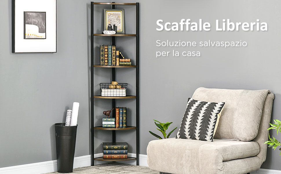 HOMCOM Libreria Moderna A Muro Con 5 Ripiani In Legno Grigio Bianco