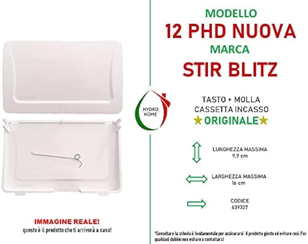 TASTO+MOLLA PER PLACCA NUOVA BIANCA STIR BLITZCod. 639327 - Ricambio Originale Stir Blitz. Prodotti Contenuti Piè di pagina Chiamaci al numero 0289830022 e acquista comodamente da casa Placca Pucci 1 Pulsante Kit Tasto + Molla Bianco 639327 Per Placca Nuova Serie - Https://www Stir Blitz Tasto+molla per placca nuova bianca per cassetta di scarico ad incasso Stir Blitz 12PHD