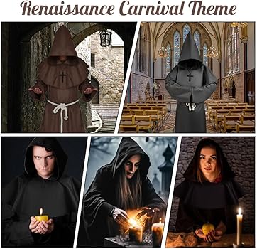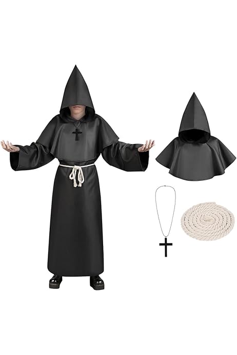 abbastanza a lungo da cadere liberamente sul petto. Alta Qualità: Le vesti da monaco sono realizzate in tessuto di poliestere morbido e confortevole, confortevole, leggero, traspirante, non irritante per la pelle, sano e la vestibilità ampia garantisce libertà di movimento anche quando si indossano vestiti sotto. Il colletto è studiato per adattarsi meglio alla figura del monaco. Istruzioni di lavaggio : Lavaggio in lavatrice Set Classico In Quattro Pezzi: Il set di costumi da monaco comprende 1 veste da monaco + 1 cappello da monaco + 1 collana con croce + 1 corda per cintura. Aomig Costume da Monaco , Monaco Sacerdote Accappatoio Frate Medieval Rinascimentale, Cosplay Costume Robe Adulto Mantello, Abito da Mago Costume da Prete per Halloween Carnevale(Marrone-2XL Paese di origine : Cina Descrizione Dettagliata Set di disegni per immagini di prete e monaco Un set completo di costumi medievali con cordoncini e colletti è molto adatto per gli amanti del cosplay, se vuoi essere un prete, un mago o un monaco, il nostro costume da prete sarà la scelta più adatta, molto adatto a varie feste a tema. Ampie Applicazioni: Il mantello con cappuccio lungo è perfetto per costumi teatrali, costumi cosplay di Halloween, costumi da mago, carnevali rinascimentali, fumetti, spettacoli teatrali, costumi da monaci medievali ed eventi cosplay. Unisex: Il costume da monaco adotta un design unisex, semplice ma elegante. Specifiche dell'imballaggio: 31 * 22 * 3,2 cm Quantità: 4 pezzi (1*corda+1*collana a croce+1*vestito+1*cappuccio) Taglia:XL/2XL Materiale: 100% poliestere Colore: marrone/neroComposizione materiale : 100% Poliestere Porta un tocco di pietà alla festa con questo costume da monaco dall'aspetto autentico. Monaco Sacerdote Accappatoio Costume Da Monaco, Frate Costume Gonfiabile Indossa un cappuccio e diventerai la persona più misteriosa della festa. Design Speciale: La veste del prete ha un design oversize che può nascondere il tuo viso all'interno, creando una sensazione misteriosa. Indossa una maschera e l'effetto sarà migliore.