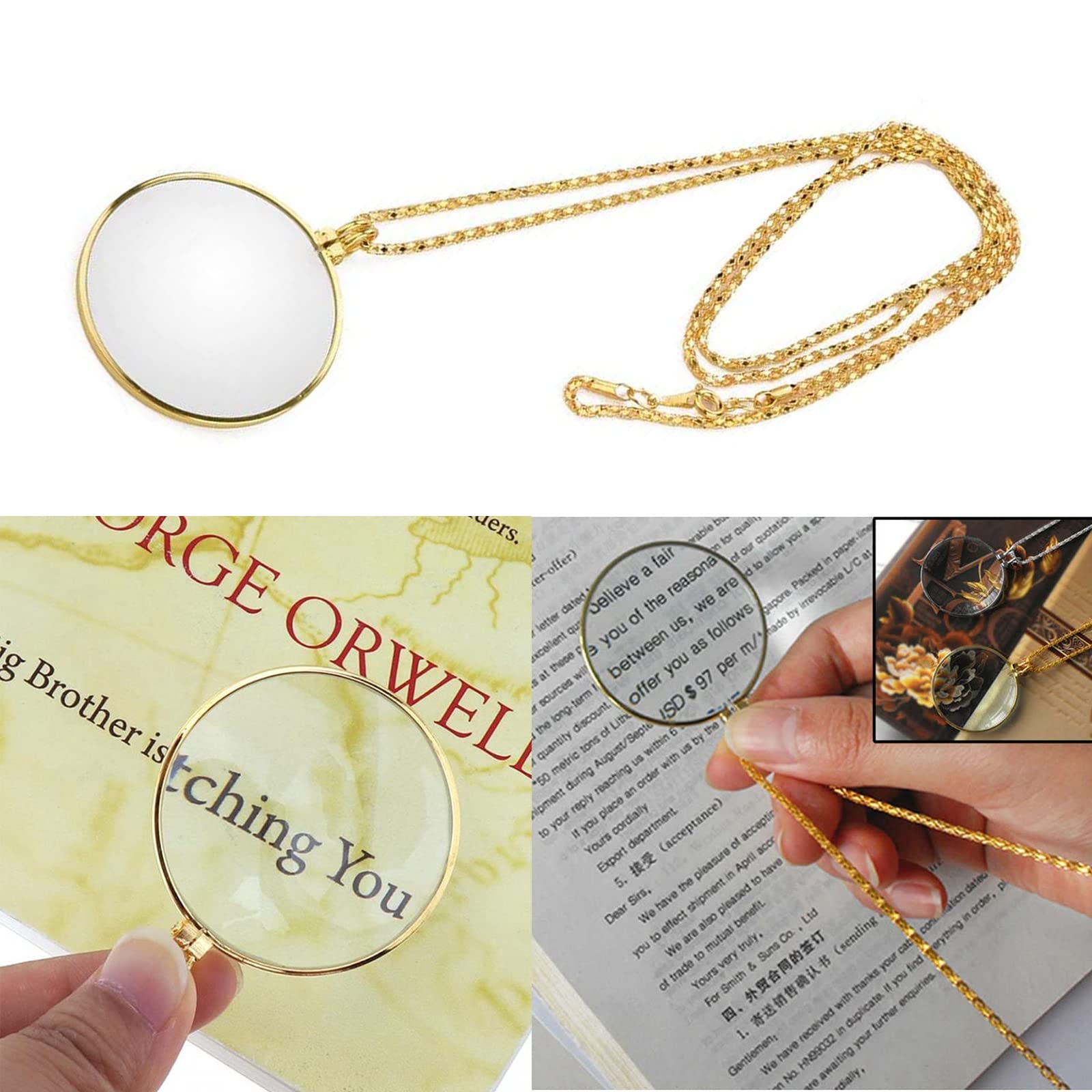 SUpoetry 2 Pezzi 5X Collana Con Lente Monocolo, Lente D'Ingrandimento Per Collana, Catena A Lente D'Ingrandimento, Per Leggere Libri, Lavoro O Viaggi, Giornali, Di Ingrandimento Indossabile (Oro) : Amazon.it: Salute E Cura