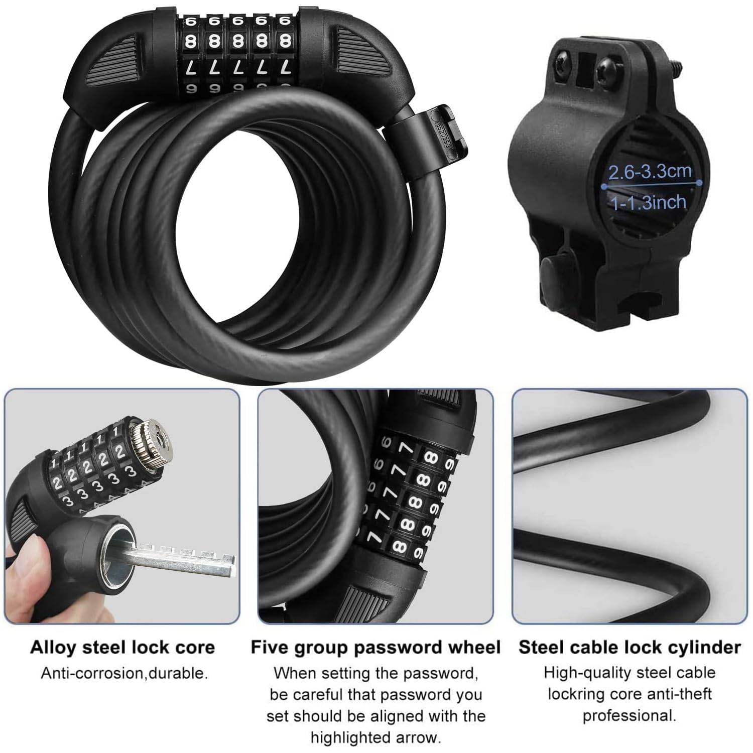 Monopattino Elettrico Lucchetto Per Bicicletta, Serratura A U Con Cavo Flessibile In Acciaio Da 1, 2 , 2 Pattini, Supporto, 2 In 1, Ad Alta Sicurezza Per Mountain Bike Su Strada Bici Elettrica